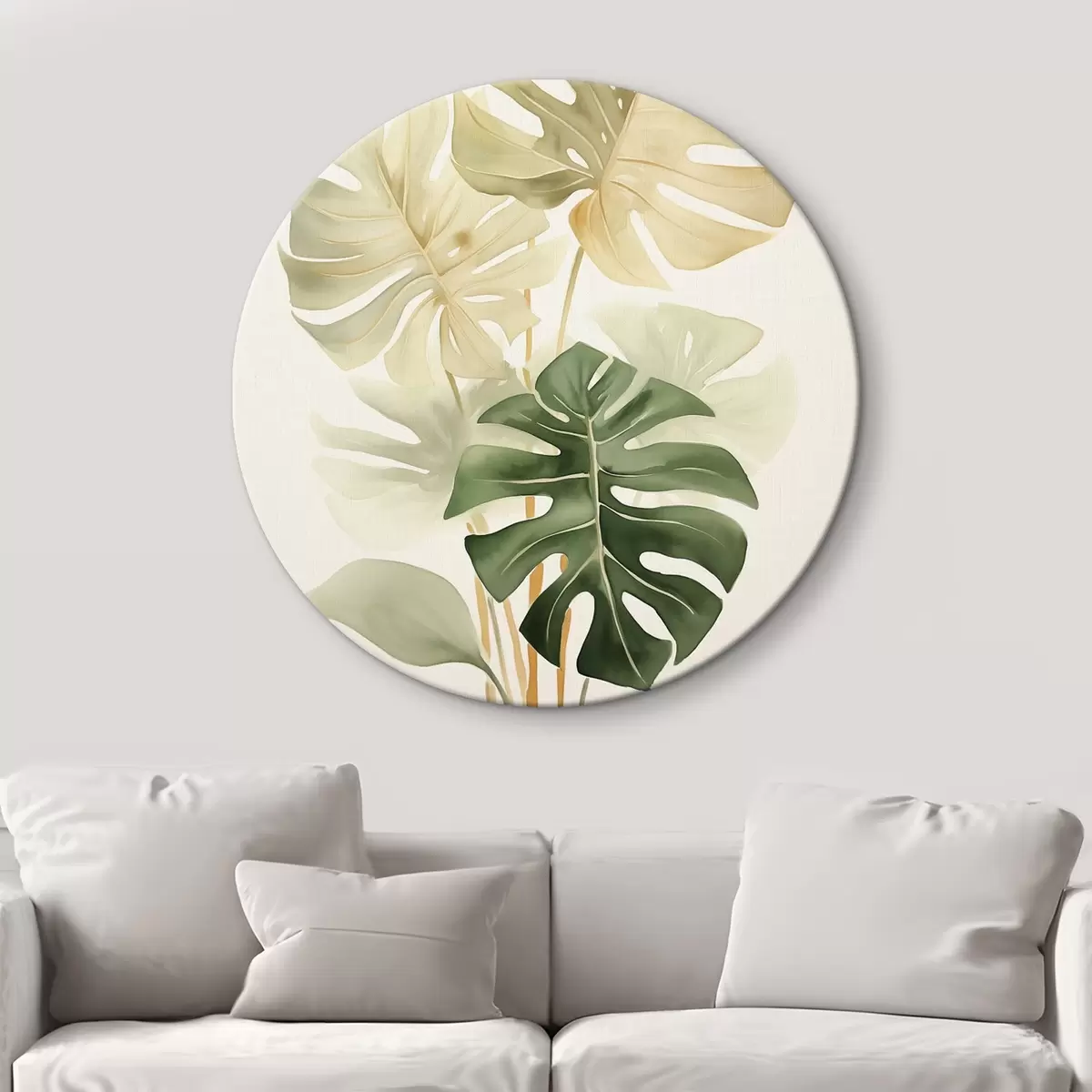 Tableaux rondes Feuilles de monstera, imitation d'aquarelle r43209