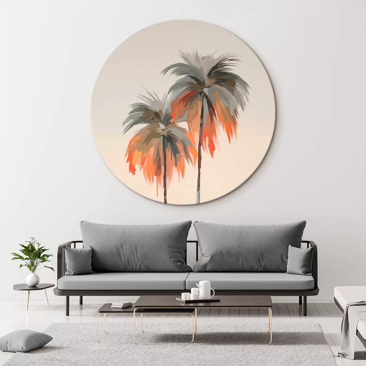 Tableaux rondes Imitation de coups de pinceau pour les palmiers Nr r43230