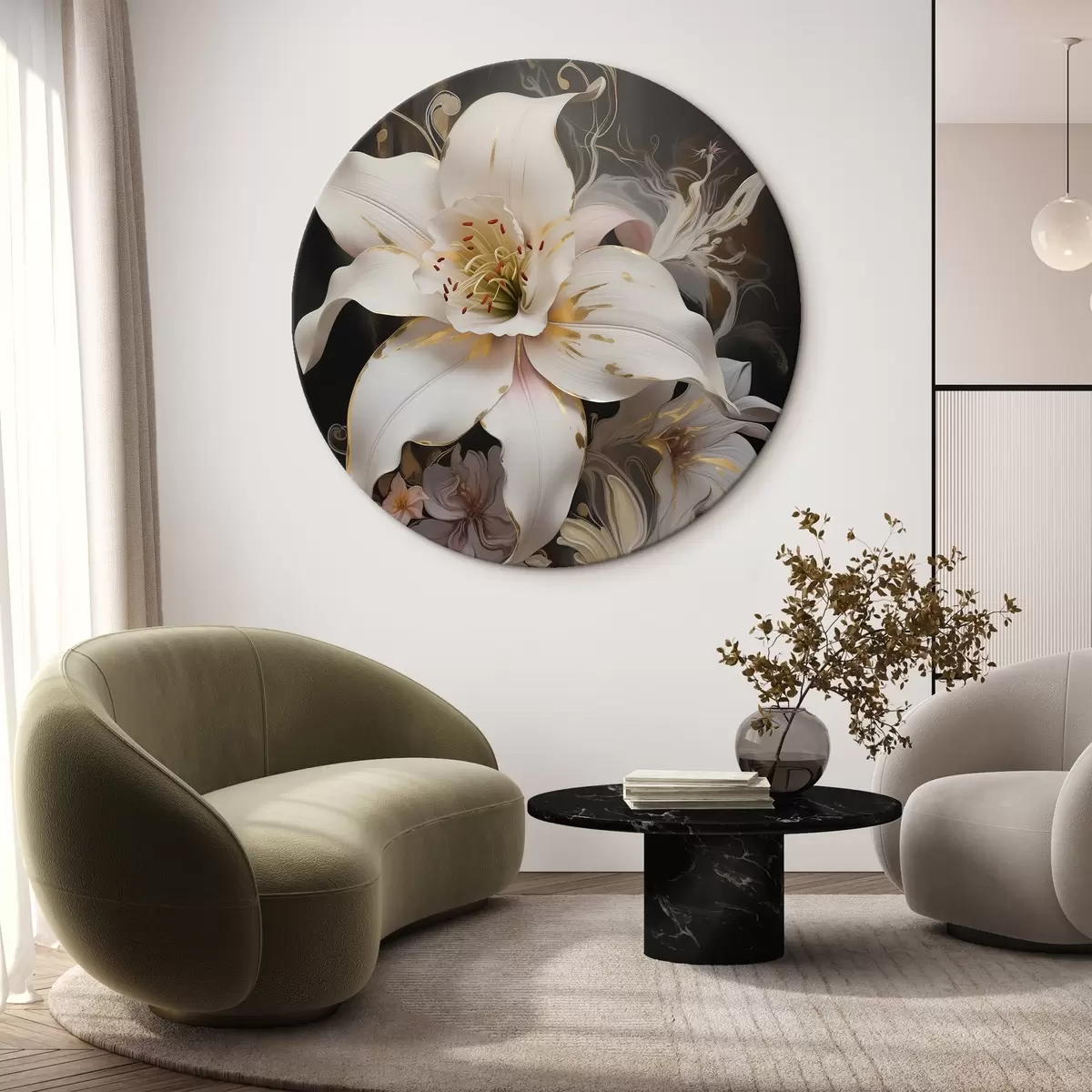 Tableaux rondes Gros plan d'une fleur de lys abstraite sur fond sombre Nr r43254