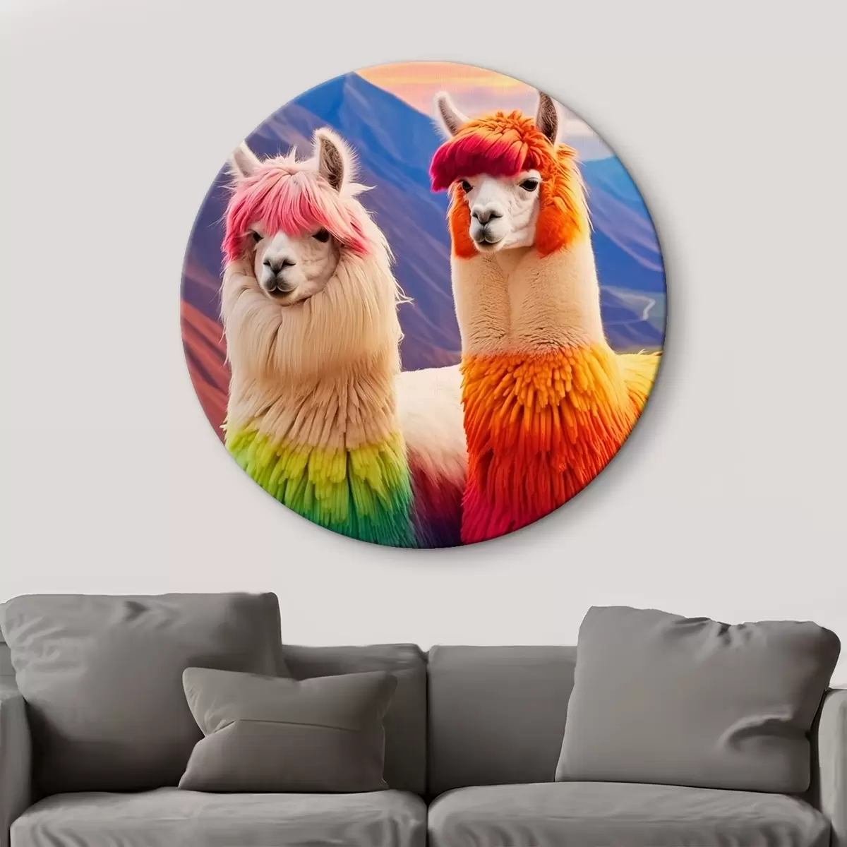 Tableaux rondes Des lamas arc-en-ciel pleins de gaieté Nr r43262