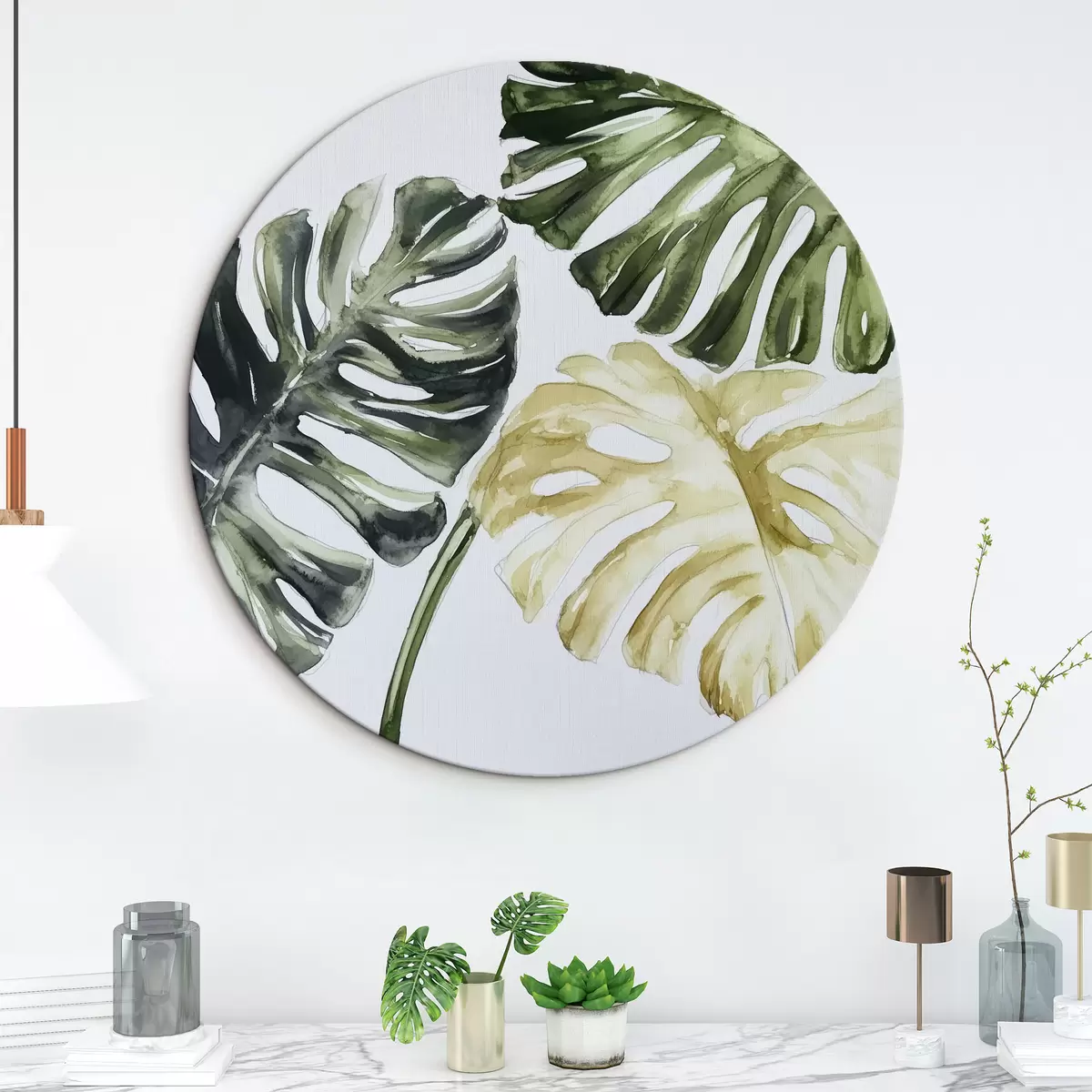 Tableaux rondes Feuilles tropicales sur fond blanc Nr r43304