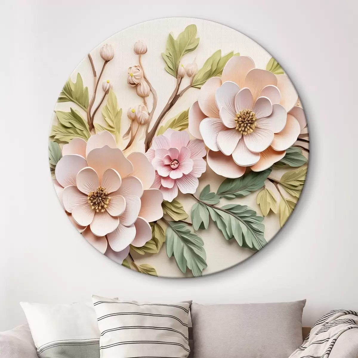 Tableaux rondes Grandes branches de fleurs, imitation de moulage r43333
