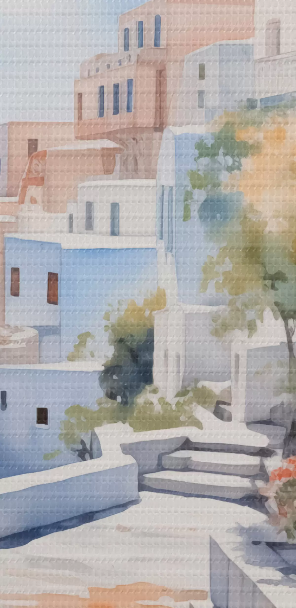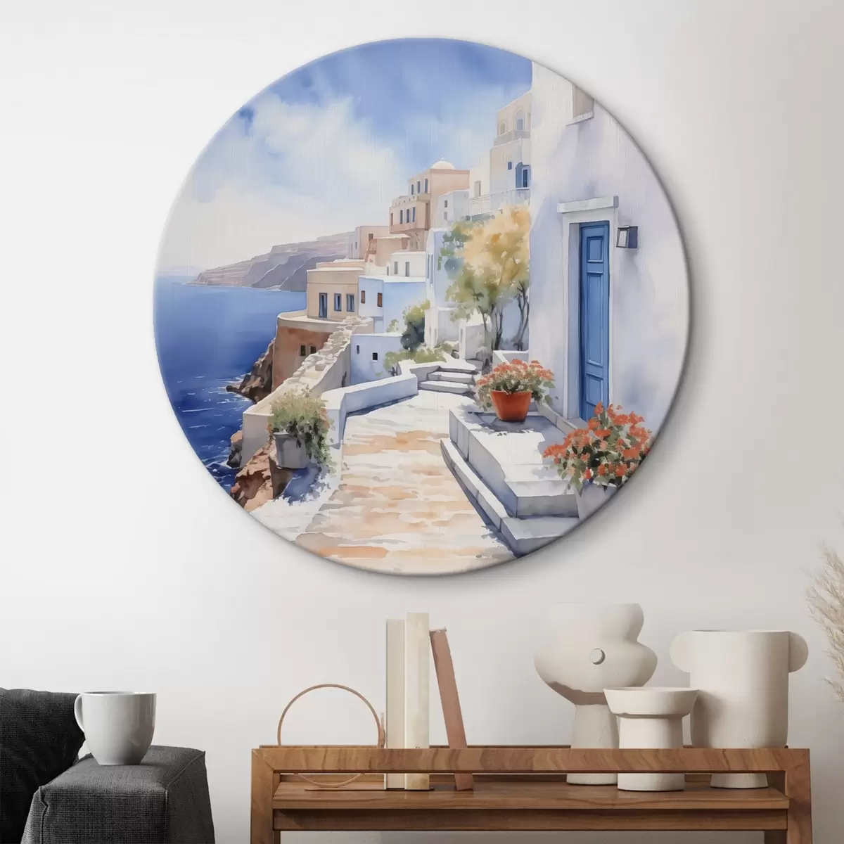 Tableaux rondes Maisons au bord de la mer imitation d'aquarelle r43346