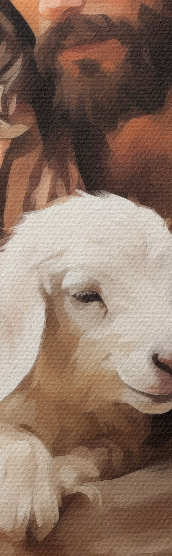 Trois types de matériaux peuvent être commandés : Economic Canvas - matériau dense et durable pour l'impression numérique, identique à la toile de peintre, surface imperméable, reproduction réaliste des détails, matériau à grain moyen. Premium Canvas - la texture ressemble à celle d'une toile de peintre (petits fils entrelacés). Reproduction douce et détaillée de l'image sur une surface mate. Eco-Premium - tissu 100 % coton de haute qualité. Grâce aux fibres naturelles de coton, le matériau est durable et résistant à l'usure. Excellente reproduction des couleurs et des détails.