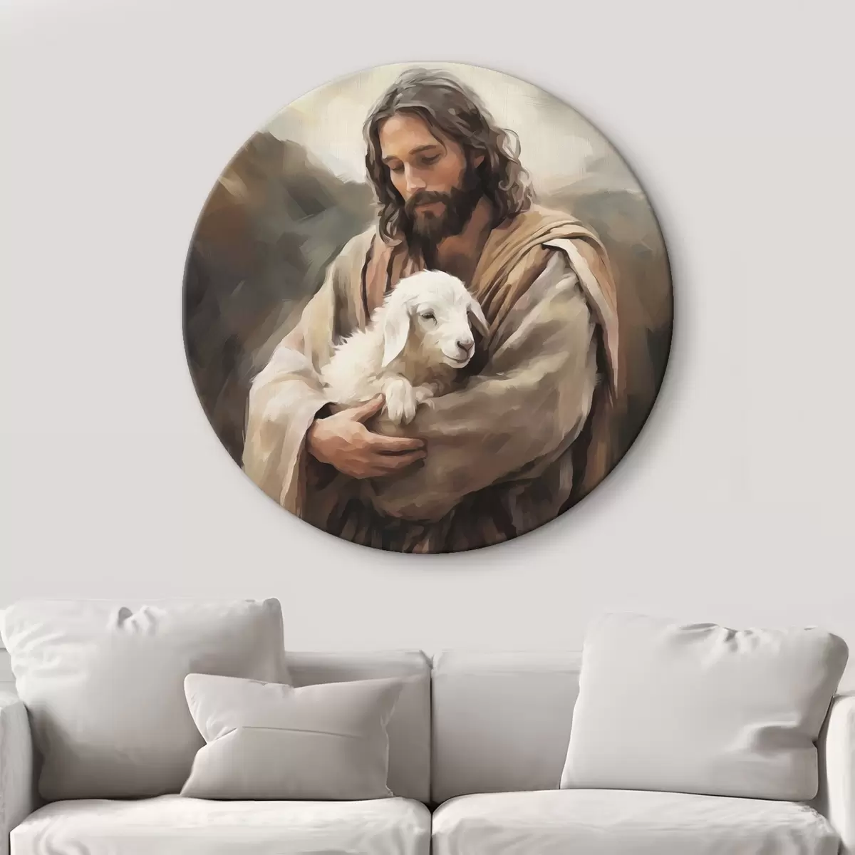 Tableaux rondes Jésus avec l'agneau Nr r43356