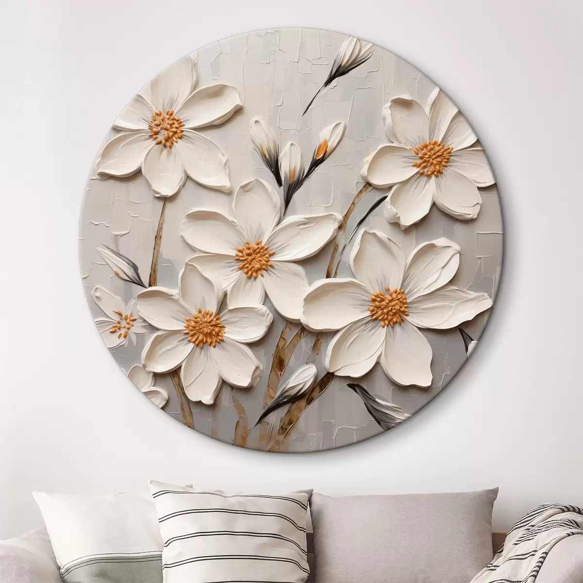 Tableaux rondes Fleurs blanches volumineuses dans un style de peinture avec de larges coups de pinceau Nr r43366
