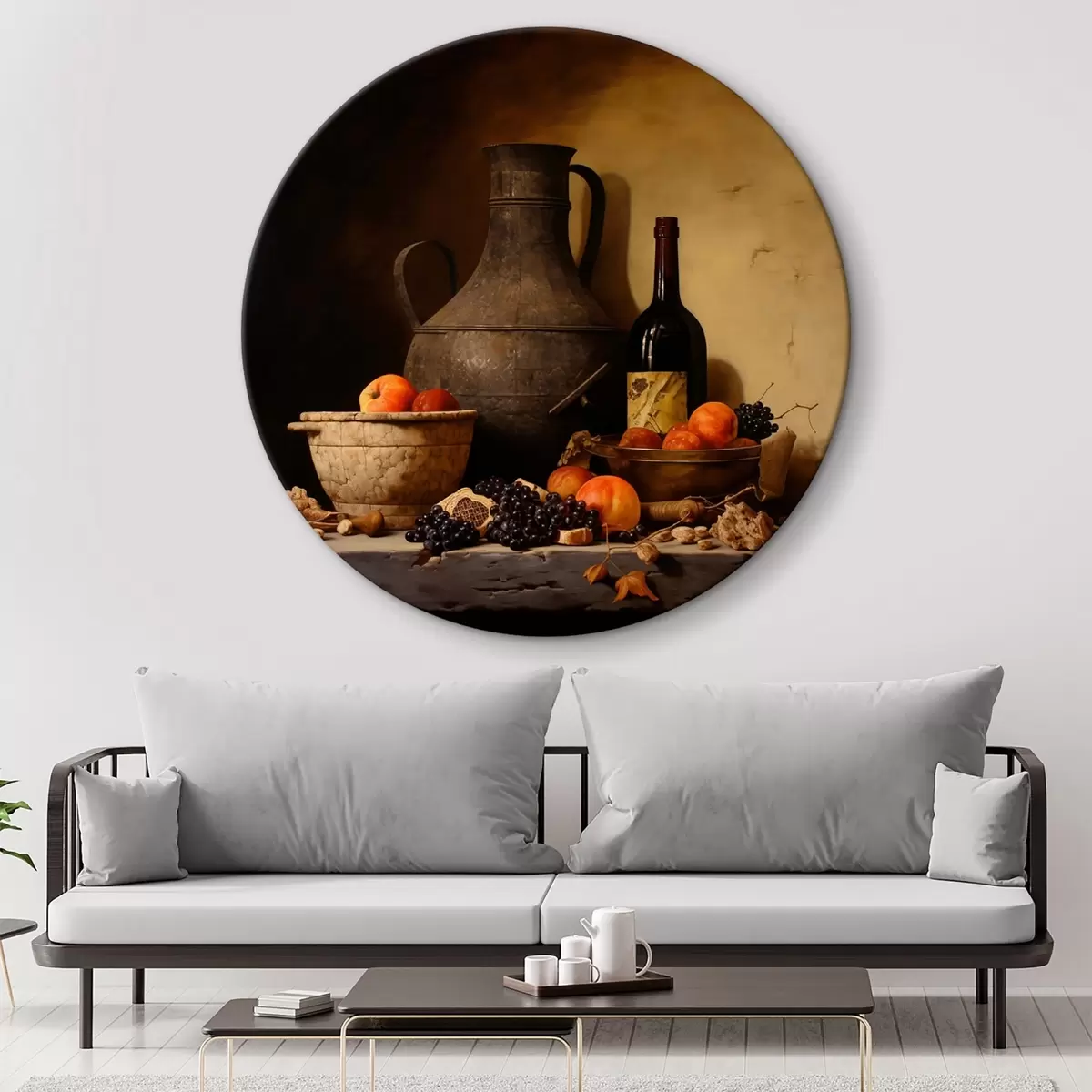 Tableaux rondes Nature morte classique avec un éclairage chaleureux Nr r43369