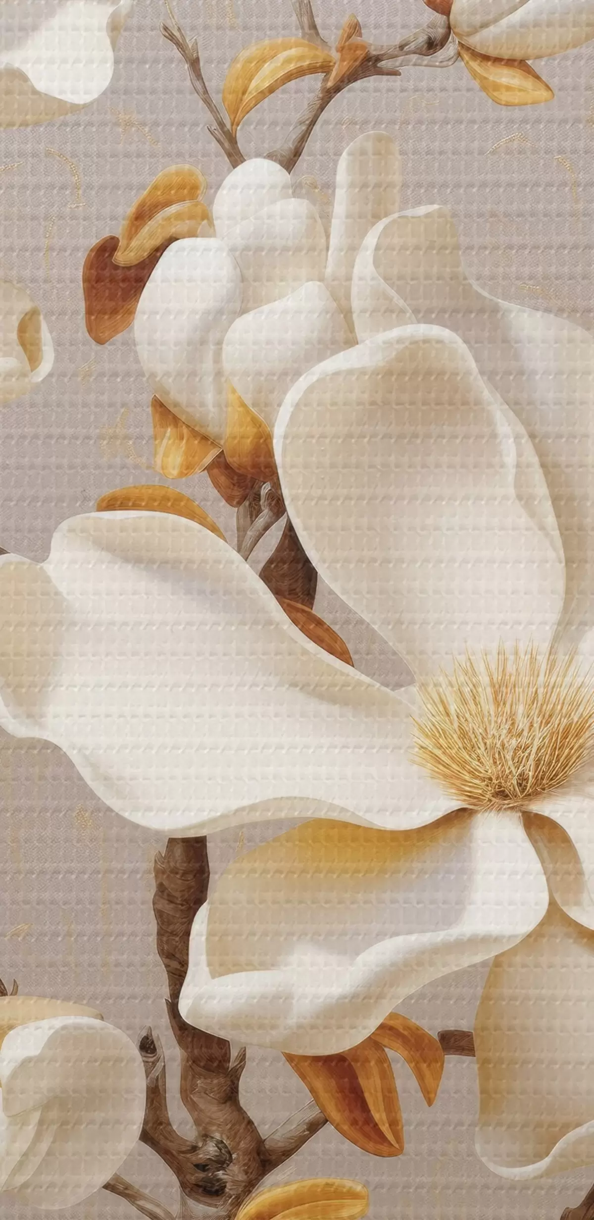 Tableaux rondes Branche de magnolia gracieuse dans les tons beiges r43373