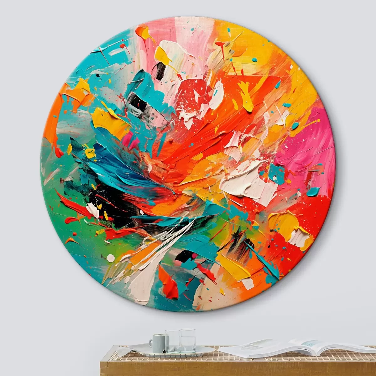 Tableaux rondes Imitation abstraite et colorée de coups de pinceau Nr r43377