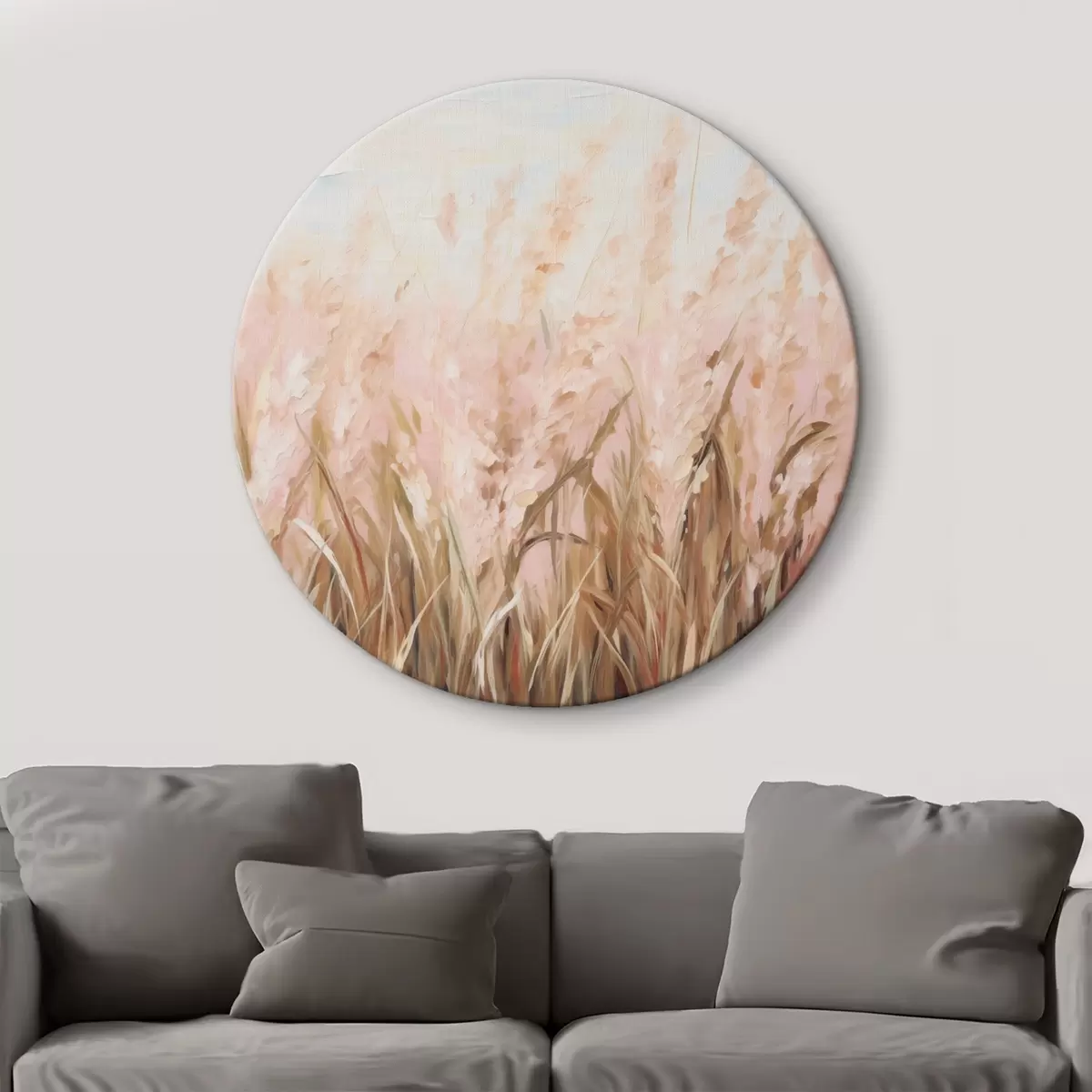 Tableaux rondes Champ d'herbe de la pampa avec des tons roses et bruns, coups de pinceau doux, peinture à l'huile abstraite imitation art r43403