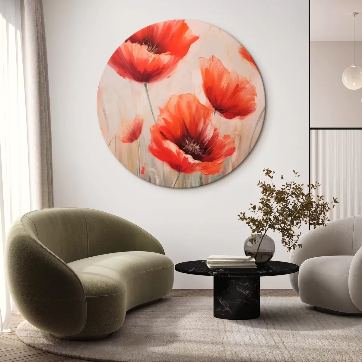 Tableaux rondes Coquelicots rouges Nr r43428
