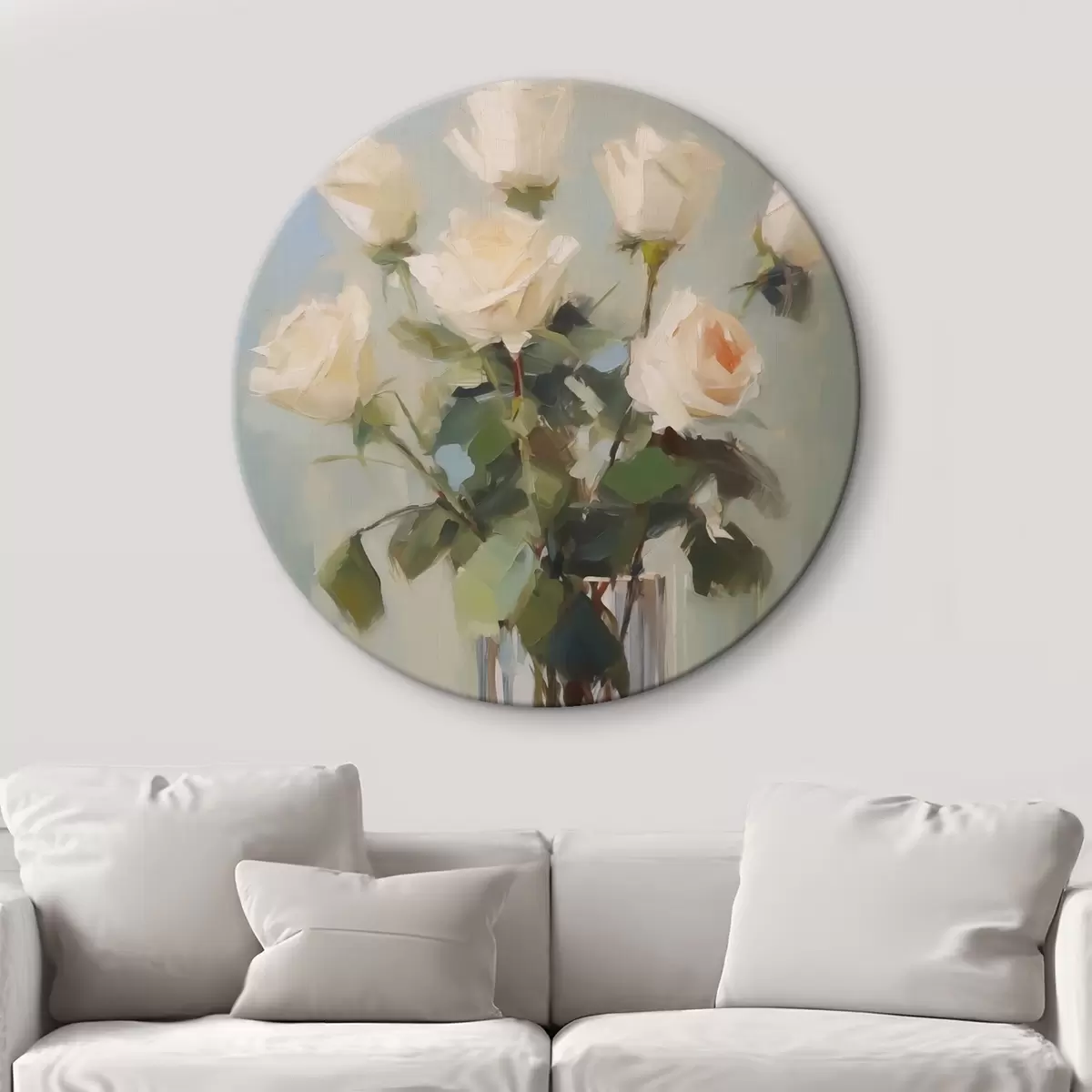 Tableaux rondes Imitation peinture de roses dans un vase en verre Nr r43432