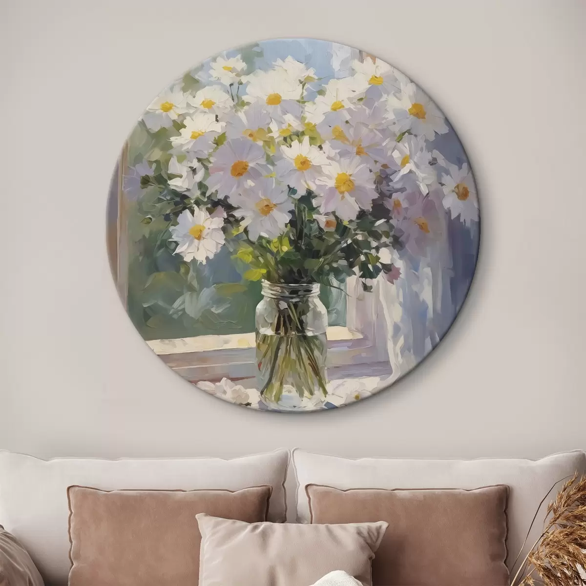 Tableaux rondes Marguerites dans un vase imitation de peinture Nr r43434