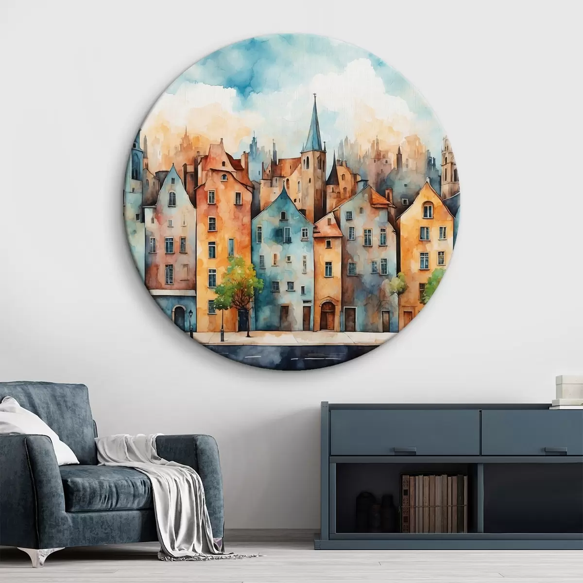 Tableaux rondes Ville européenne en style peinture aquarelle Nr r43441