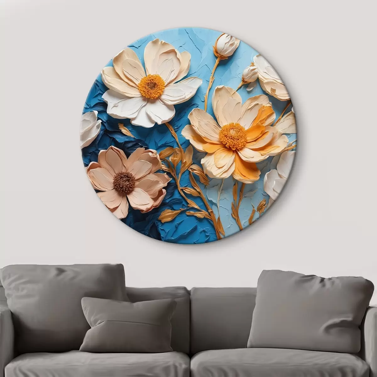 Tableaux rondes Fleurs blanches sur fond bleu Nr r43446