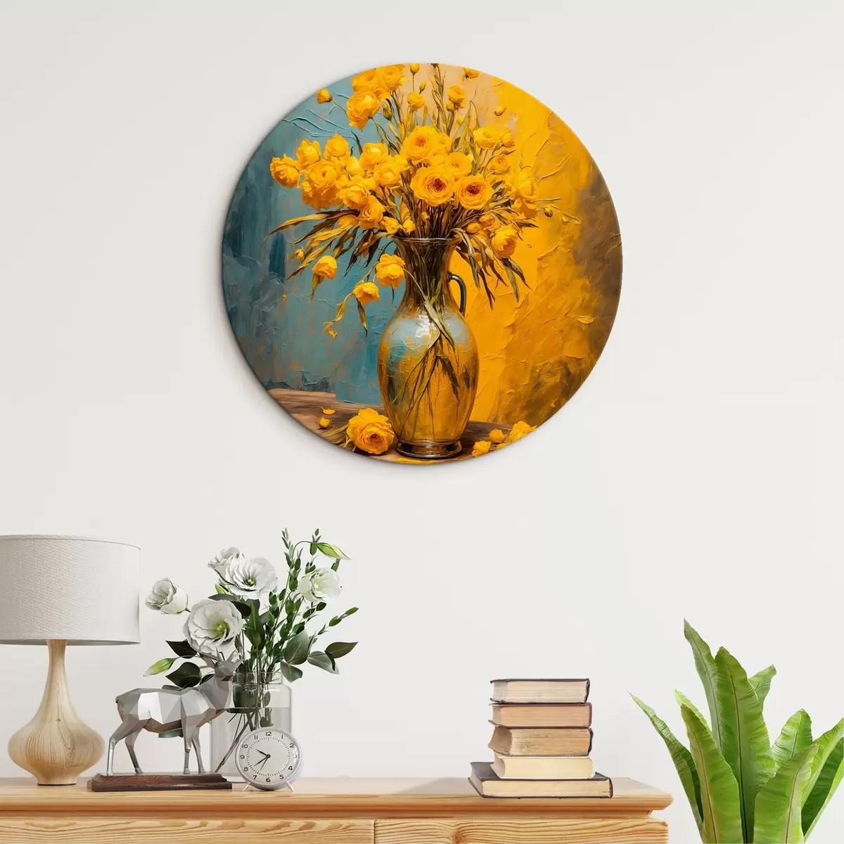 Tableaux rondes Fleurs jaunes dans un vase sur une table Nr r43462