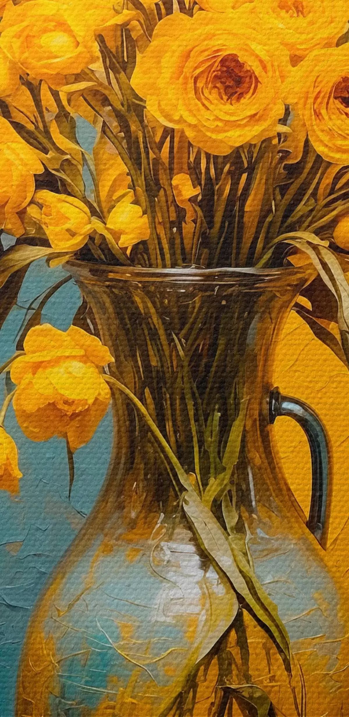 Tableaux rondes Fleurs jaunes dans un vase sur une table r43462