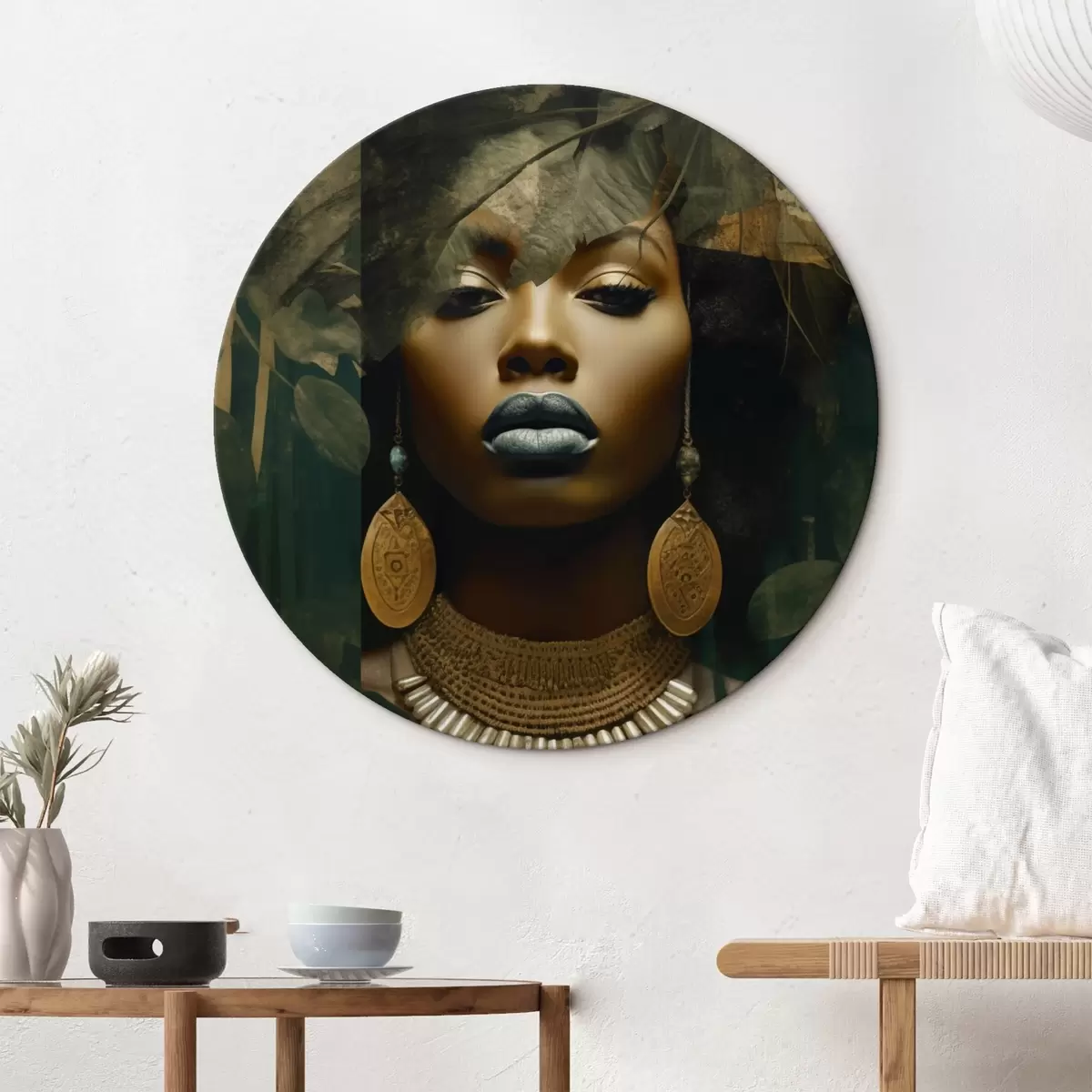 Tableaux rondes Visage de fille sur fond de forêt abstraite Nr r43466