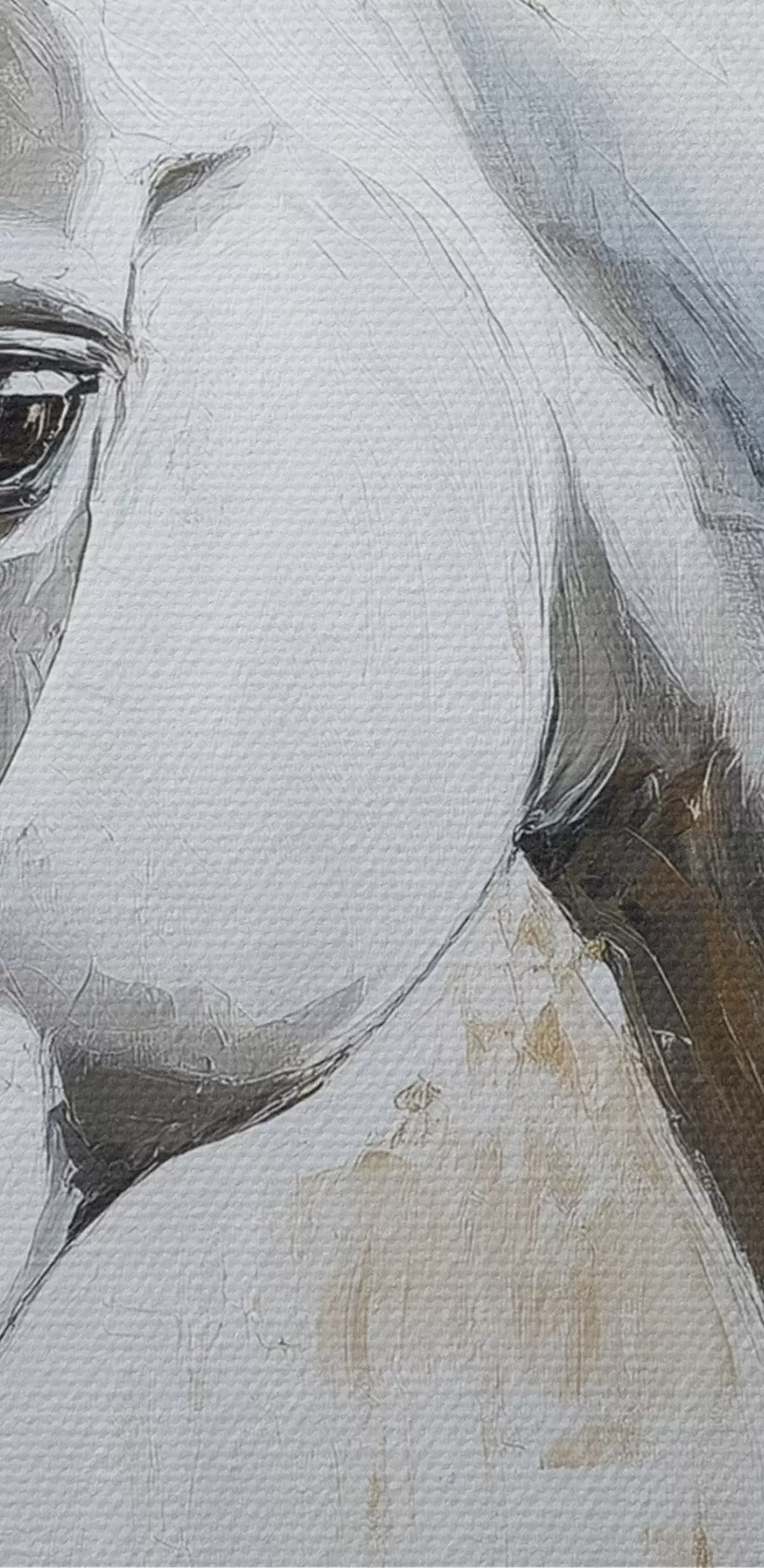 Tableaux rondes Cheval blanc, dessin à l'huile, animaux, coups de pinceau vifs r43497