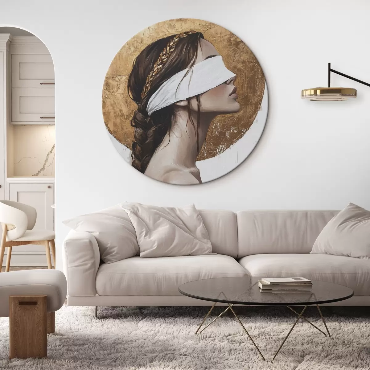 Tableaux rondes Femme avec un pansement sur les yeux, Grèce, dessin de style acrylique Nr r43502