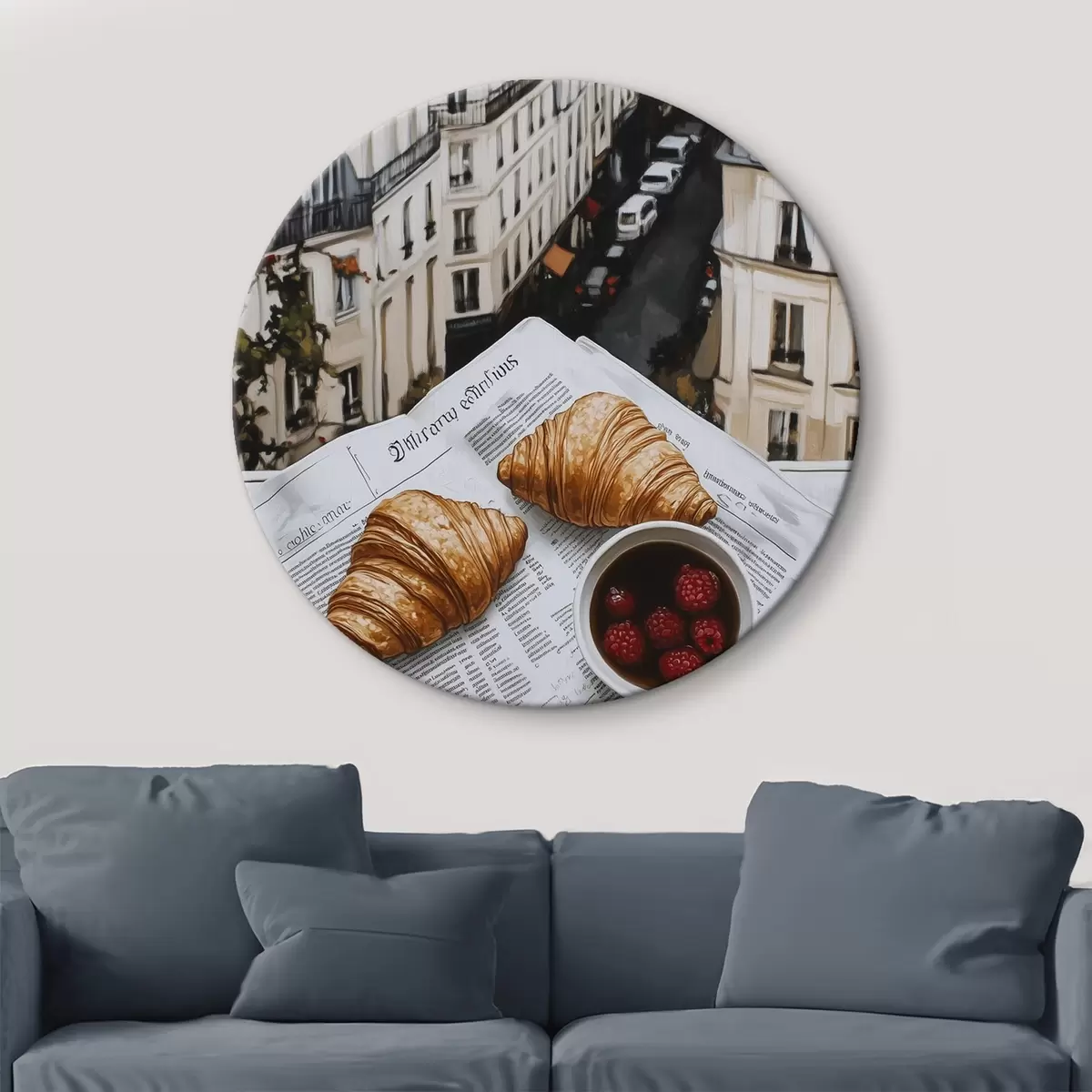 Tableaux rondes Café matinal avec croissants, rue de la ville, architecture, style huile r43891