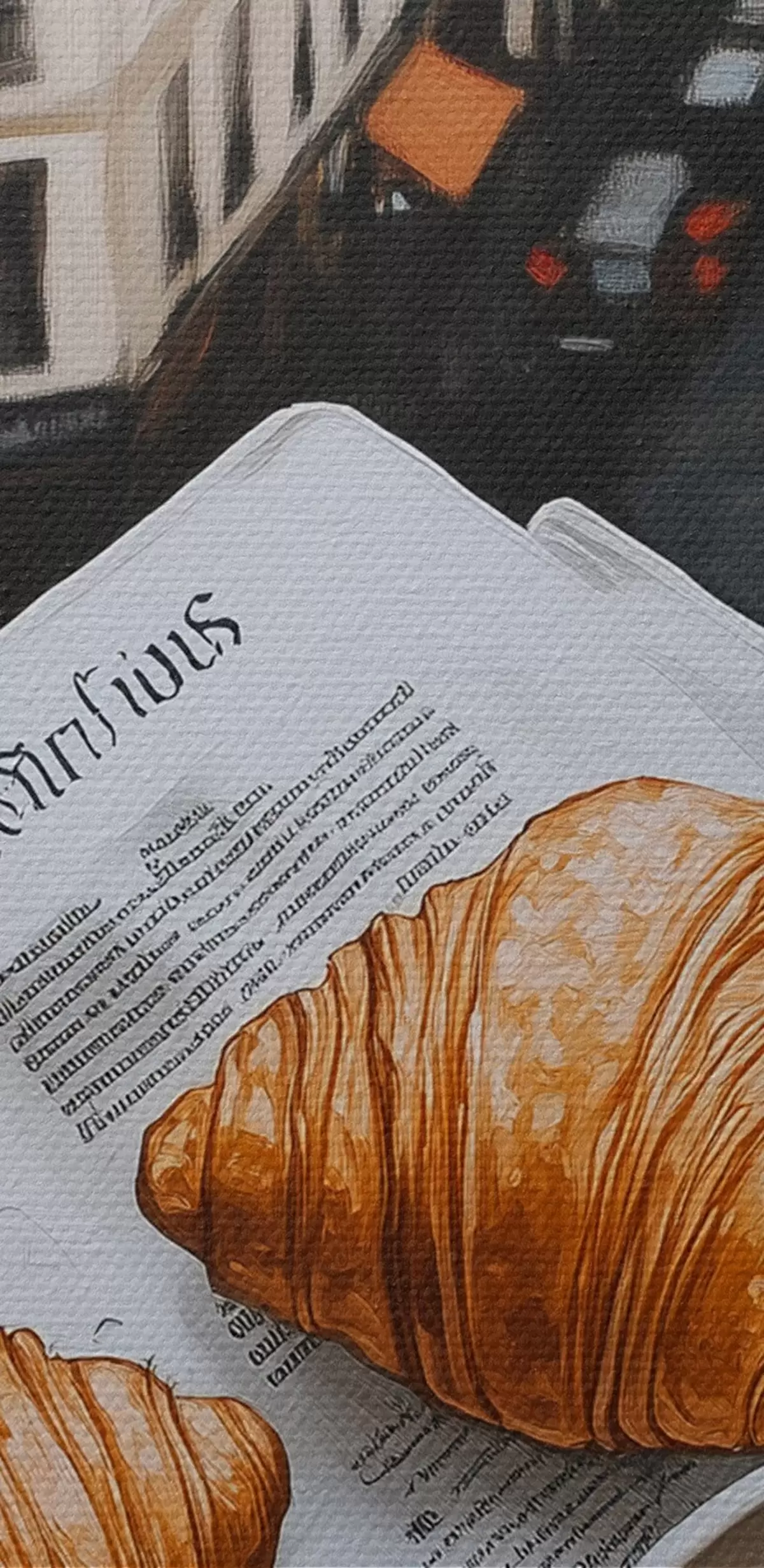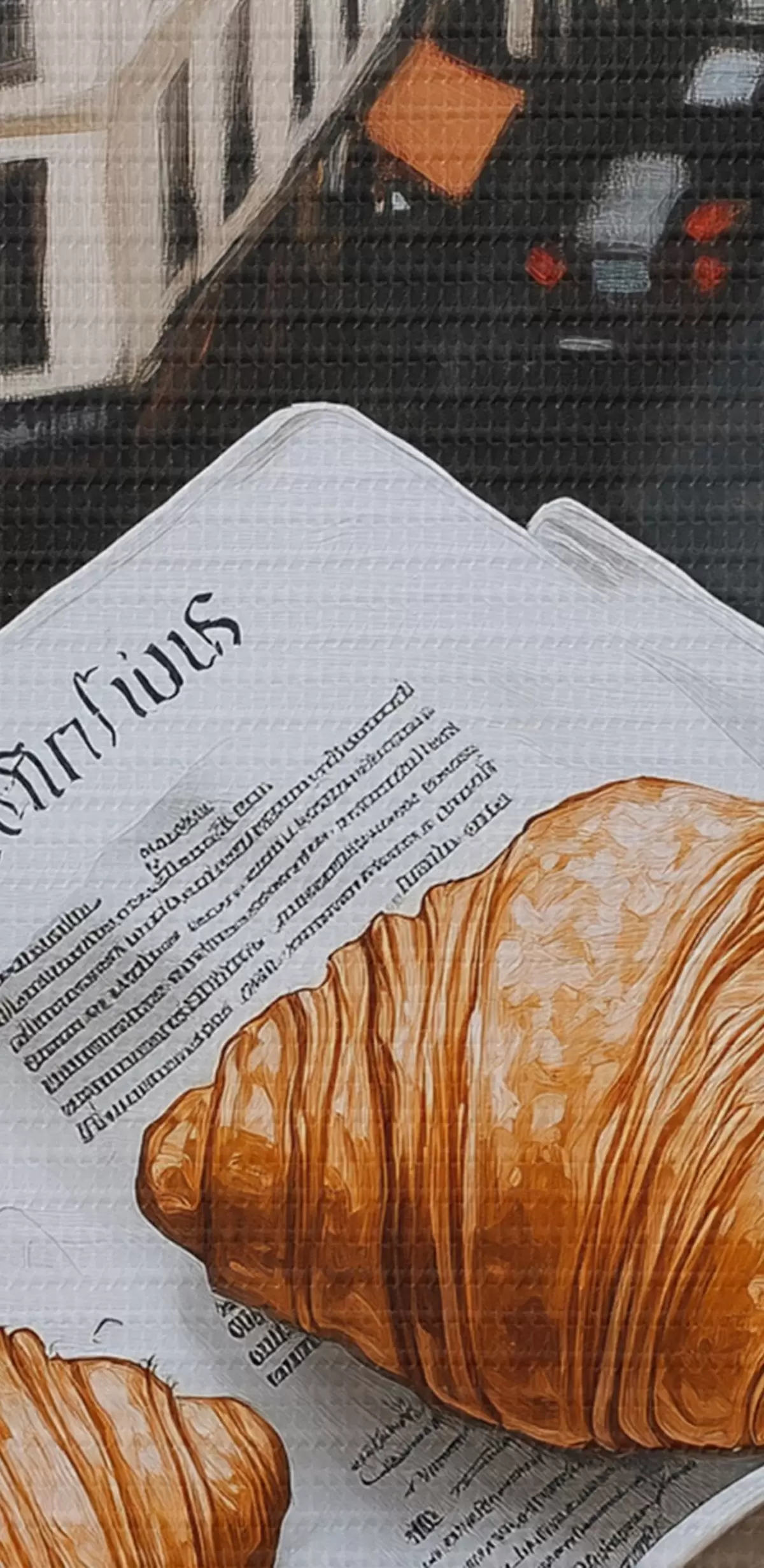 Tableaux rondes Café matinal avec croissants, rue de la ville, architecture, style huile Nr r43891