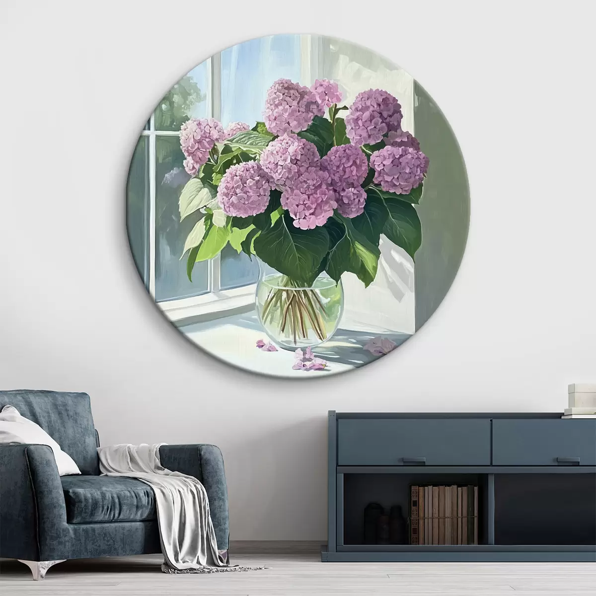 Tableaux rondes Bouquet de fleurs violettes sur la fenêtre Nr r43906
