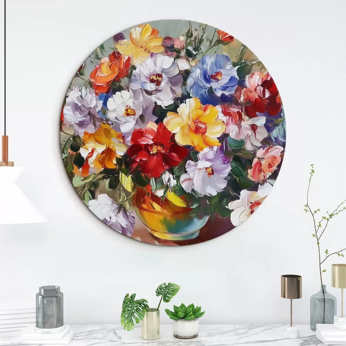 Tableaux rondes Fleurs multicolores dans un vase à la peinture à l'huile r43909