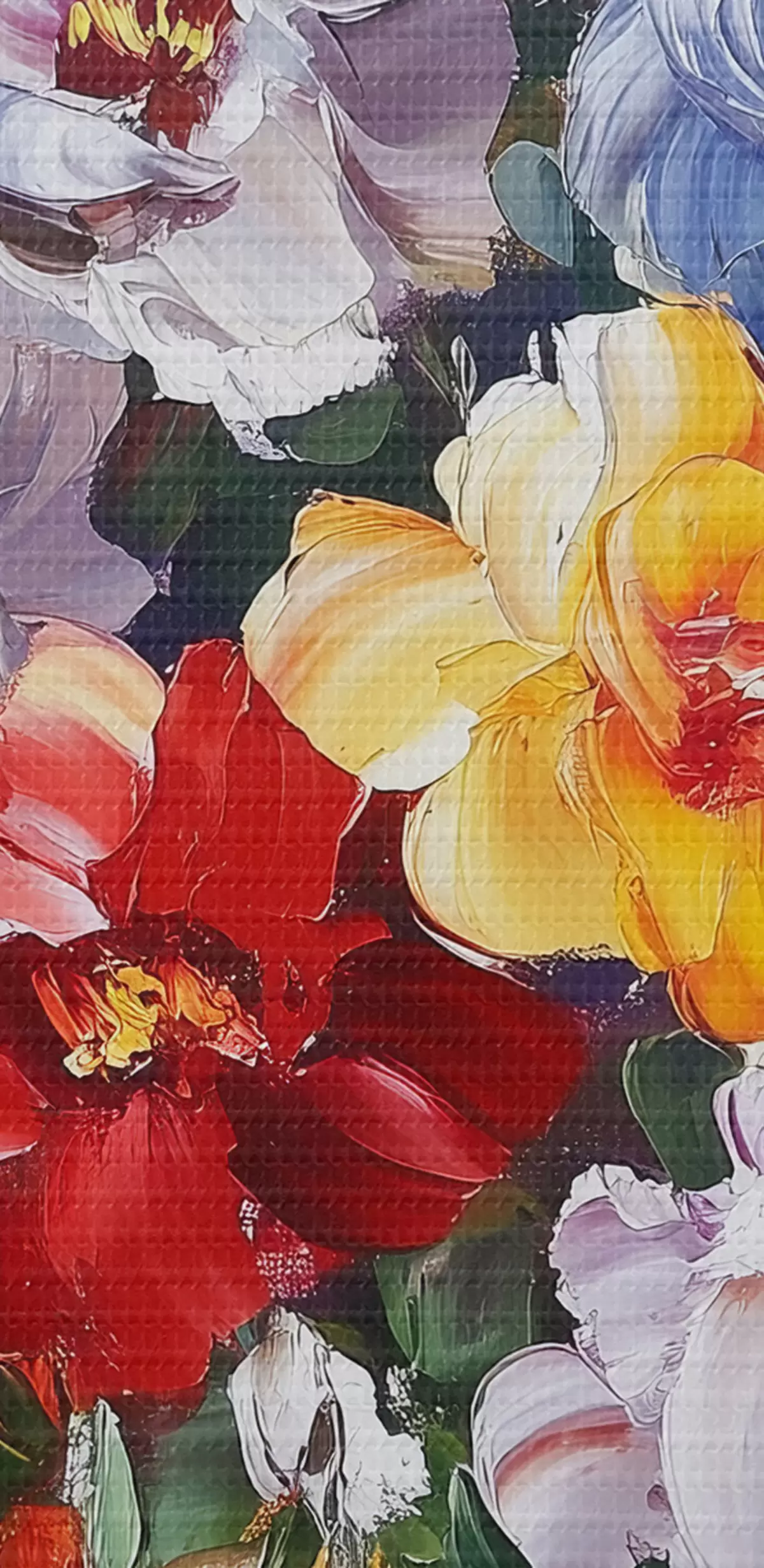 Trois types de matériaux peuvent être commandés : Economic Canvas - matériau dense et durable pour l'impression numérique, identique à la toile de peintre, surface imperméable, reproduction réaliste des détails, matériau à grain moyen. Premium Canvas - la texture ressemble à celle d'une toile de peintre (petits fils entrelacés). Reproduction douce et détaillée de l'image sur une surface mate. Eco-Premium - tissu 100 % coton de haute qualité. Grâce aux fibres naturelles de coton, le matériau est durable et résistant à l'usure. Excellente reproduction des couleurs et des détails.