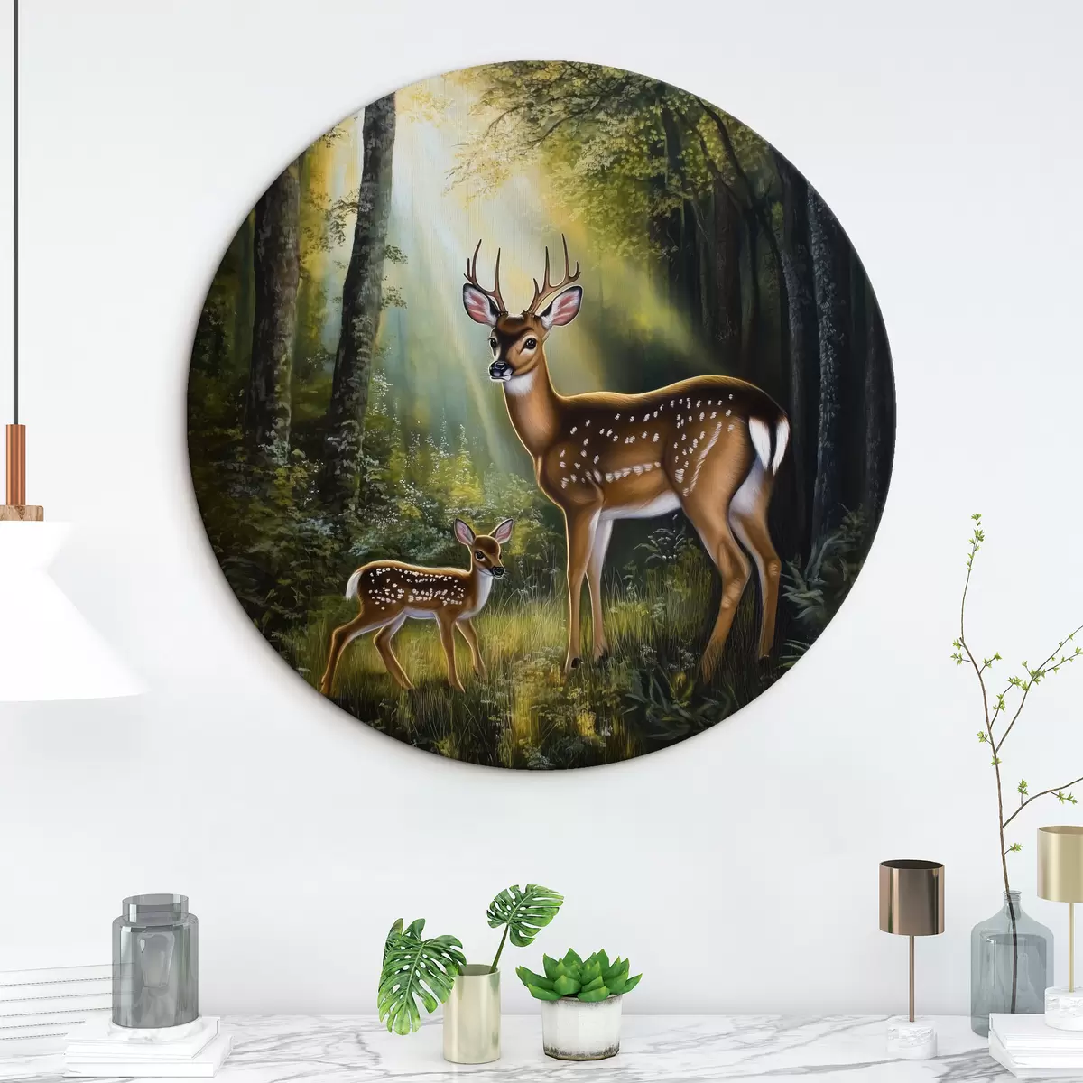 Tableaux rondes Cerf et faon dans la forêt Nr r43915