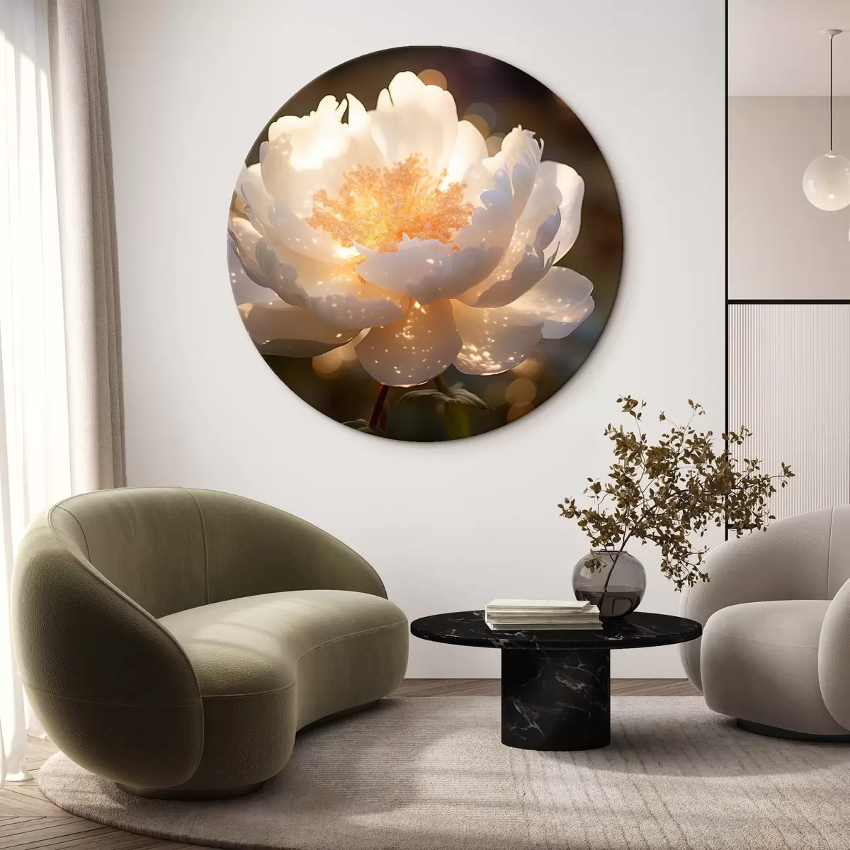 Tableaux rondes Fleur blanche avec centre lumineux Nr r43949