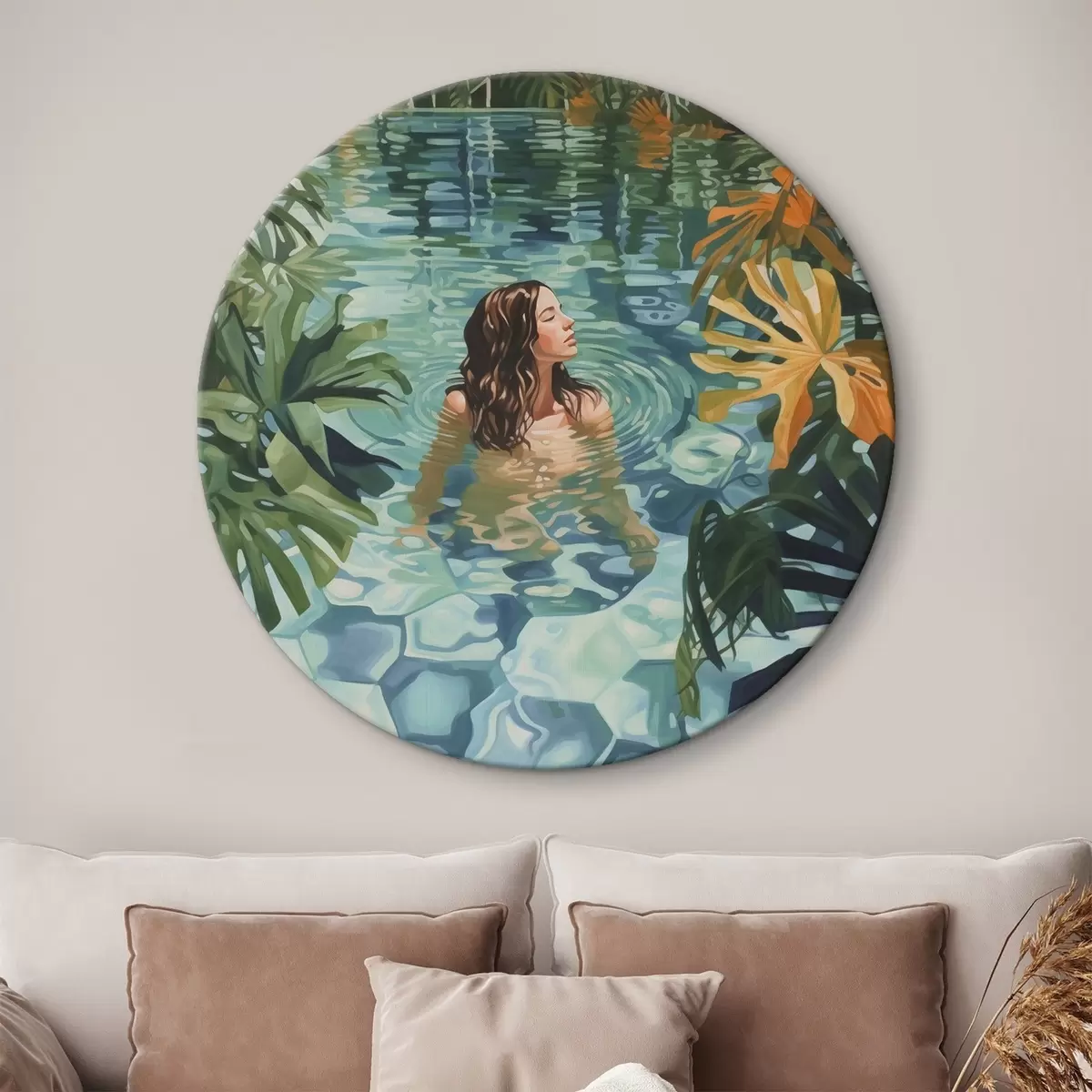 Tableaux rondes Fille dans la piscine imitation peinture Nr r43961