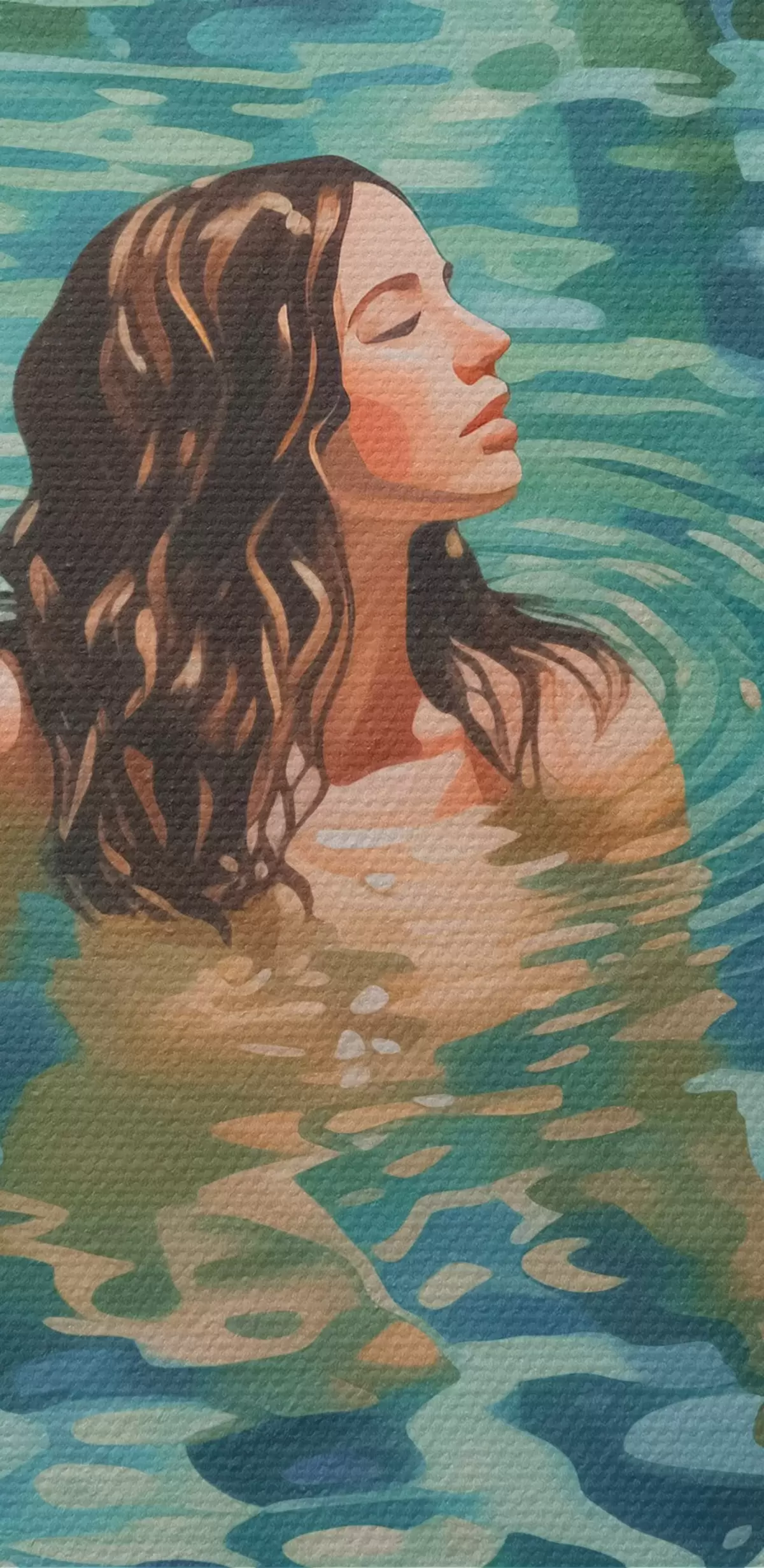 Tableaux rondes Fille dans la piscine imitation peinture r43961