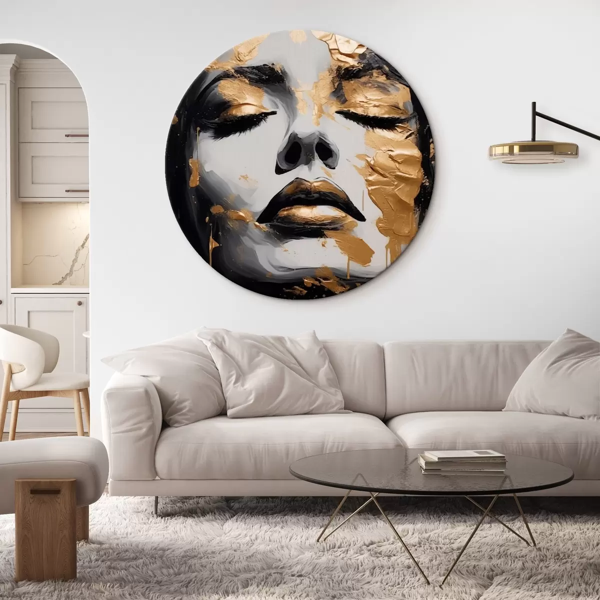 Tableaux rondes Portrait d'une femme avec des traits abstraits Nr r43988