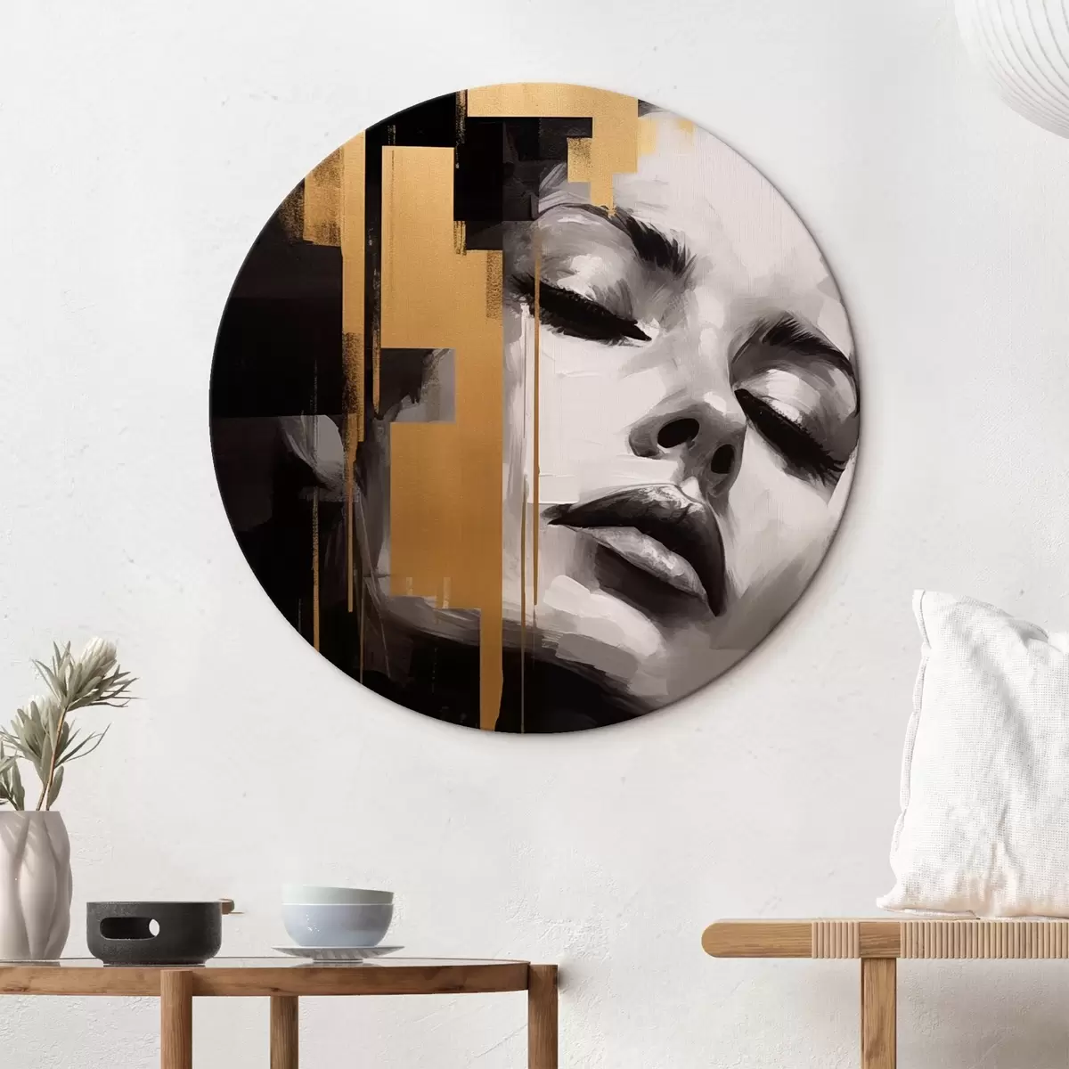 Tableaux rondes Portrait de femme aux accents géométriques Nr r43989