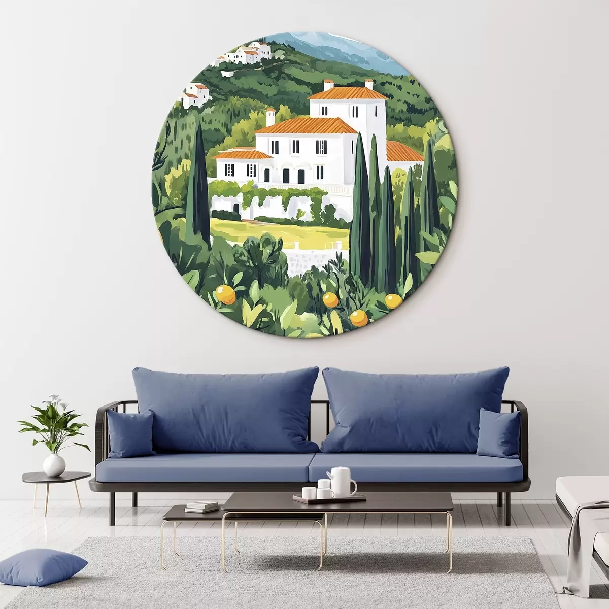 Tableaux rondes Nature estivale, méditerranéenne, citronniers, architecture r44028