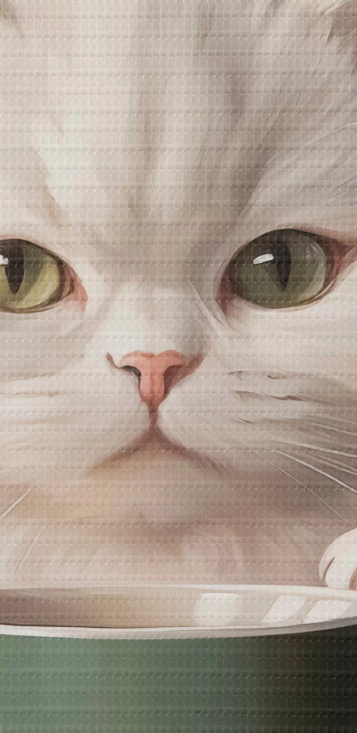 Tableaux rondes Chat blanc avec une tasse verte r44032