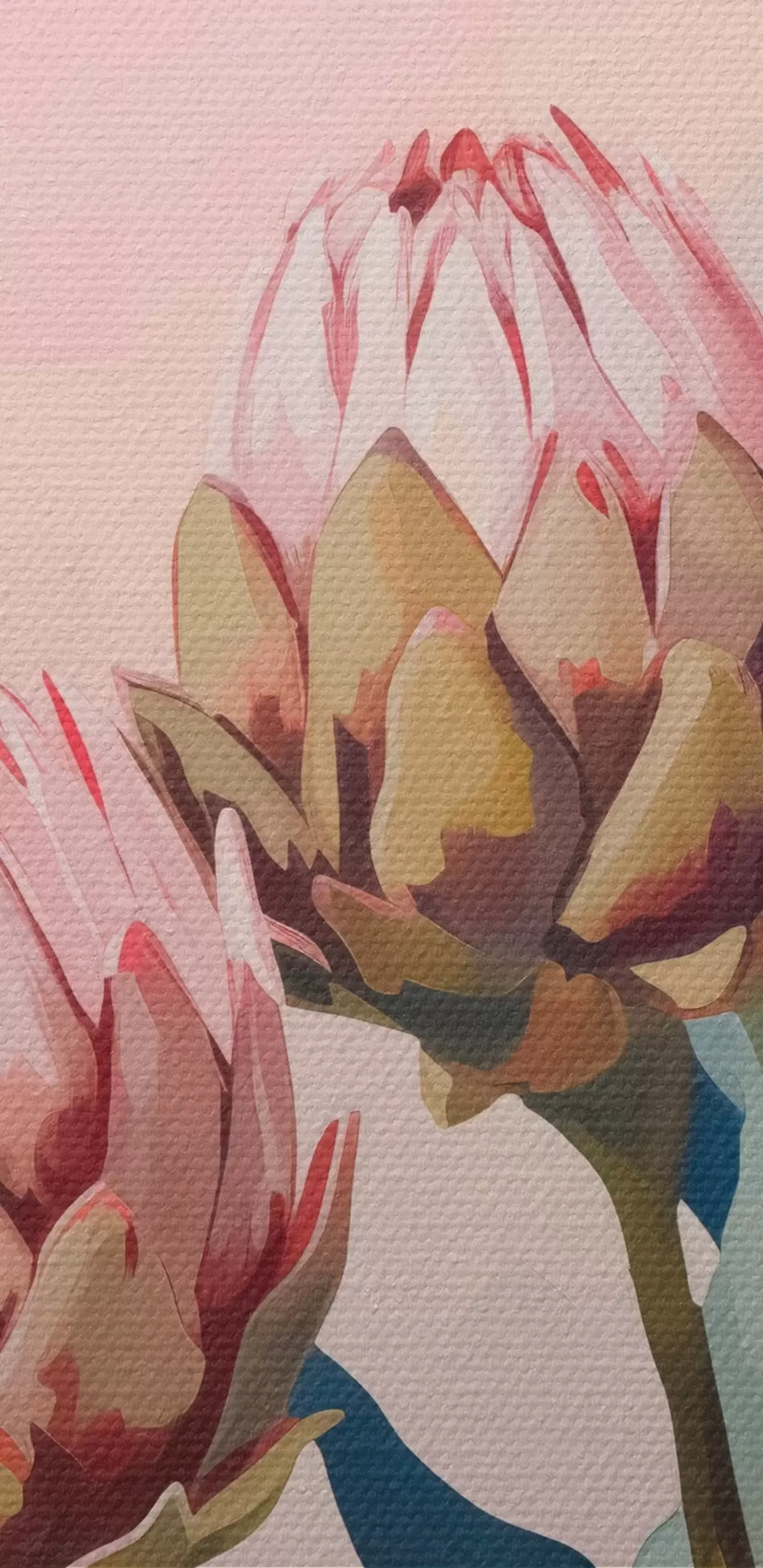 Trois types de matériaux peuvent être commandés : Economic Canvas - matériau dense et durable pour l'impression numérique, identique à la toile de peintre, surface imperméable, reproduction réaliste des détails, matériau à grain moyen. Premium Canvas - la texture ressemble à celle d'une toile de peintre (petits fils entrelacés). Reproduction douce et détaillée de l'image sur une surface mate. Eco-Premium - tissu 100 % coton de haute qualité. Grâce aux fibres naturelles de coton, le matériau est durable et résistant à l'usure. Excellente reproduction des couleurs et des détails.