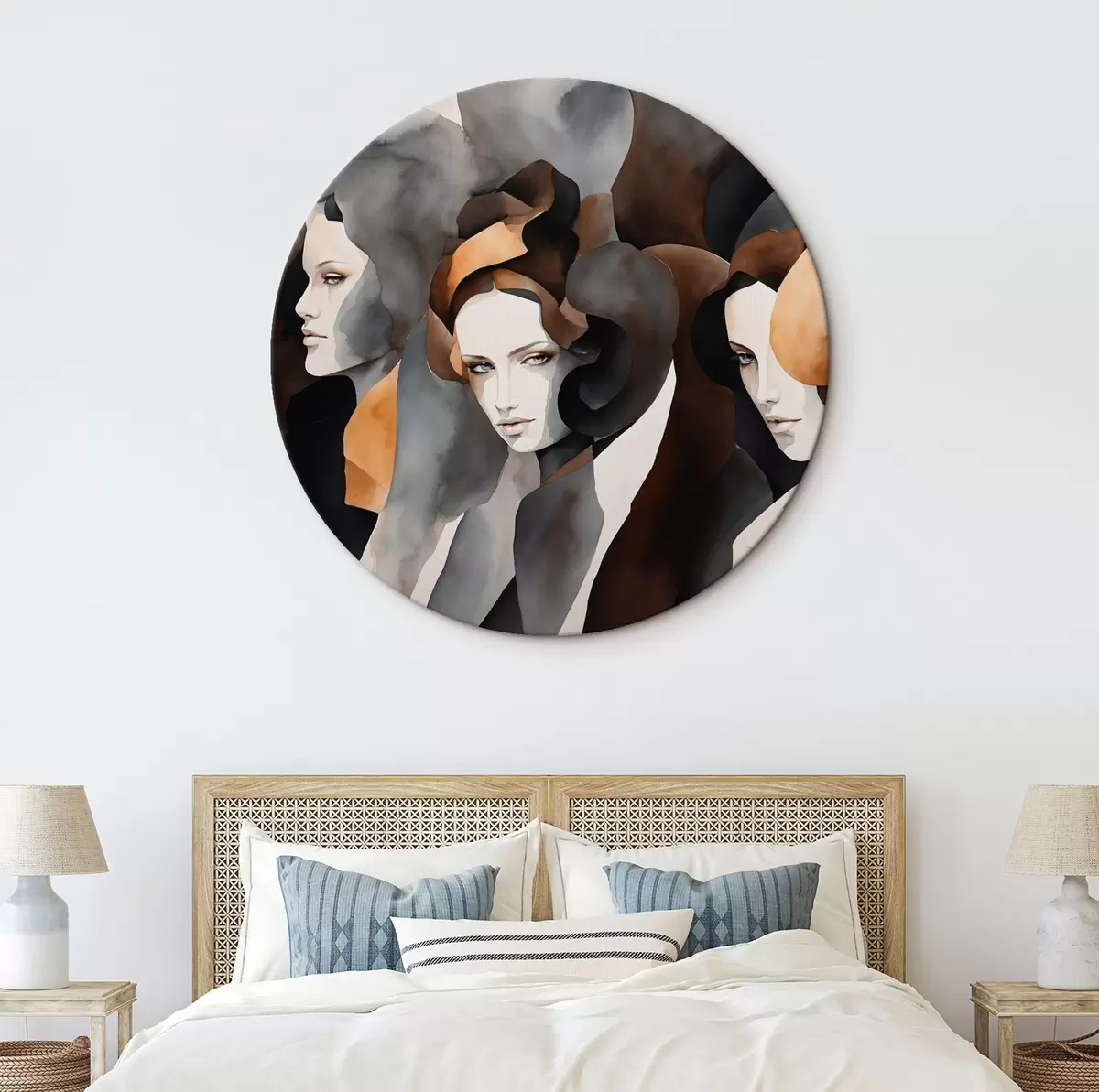 Tableaux rondes Peinture abstraite avec des visages de femmes Nr r44060