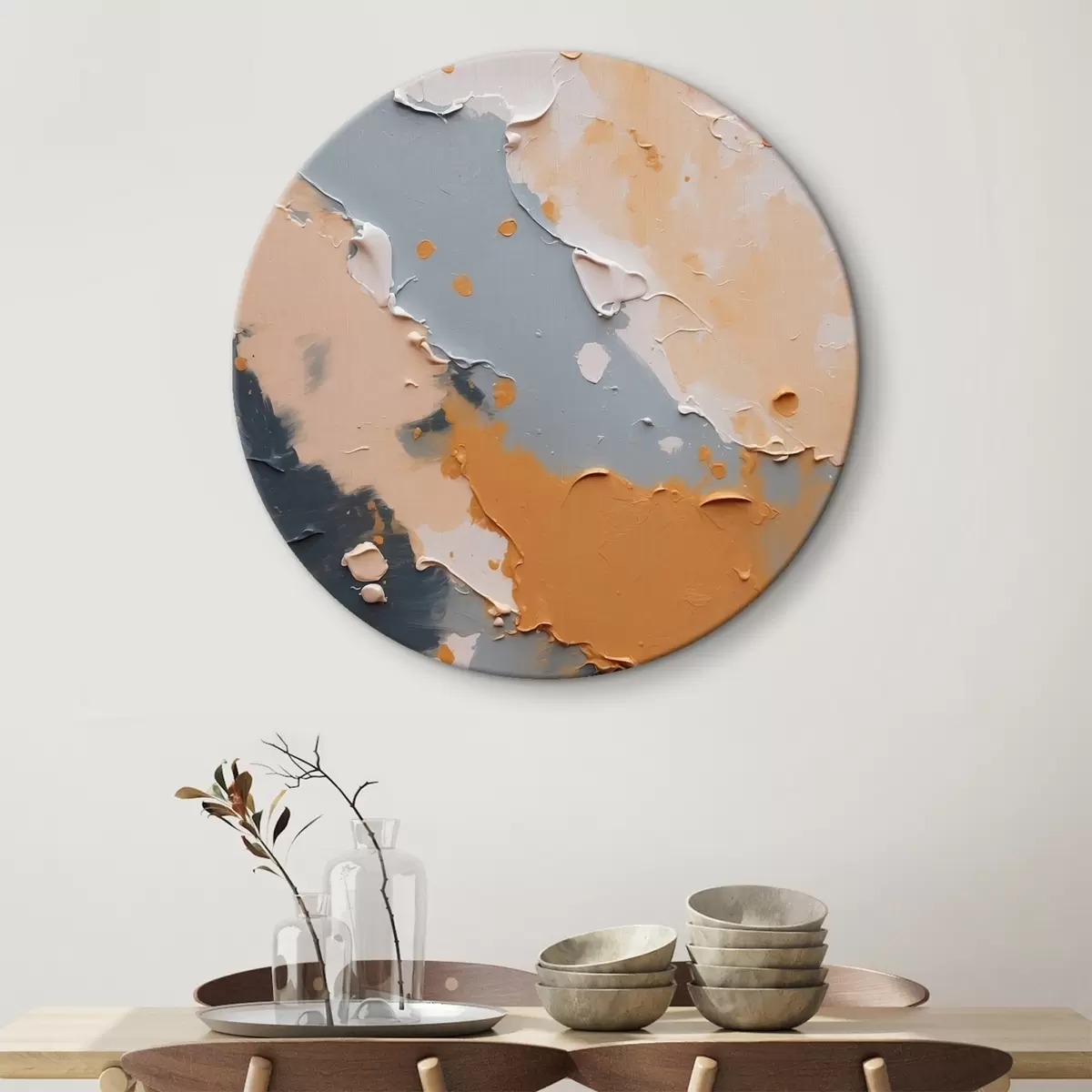 Tableaux rondes Peinture abstraite en blanc, jaune et bleu r44064