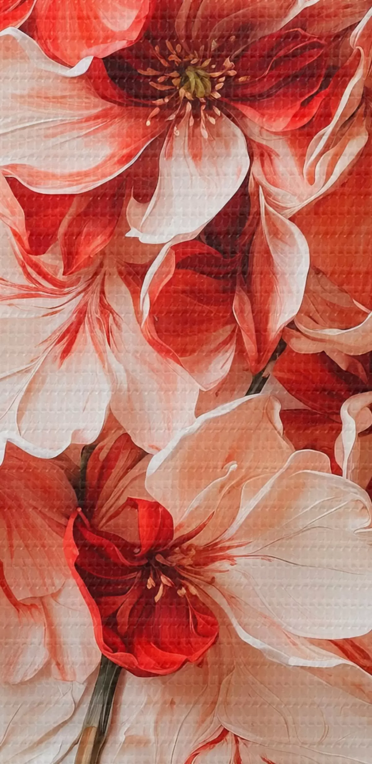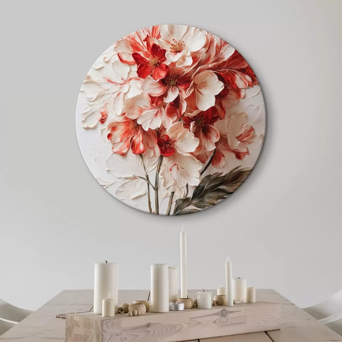 Tableaux rondes Fleurs rouges et blanches en peinture à l'huile r44090