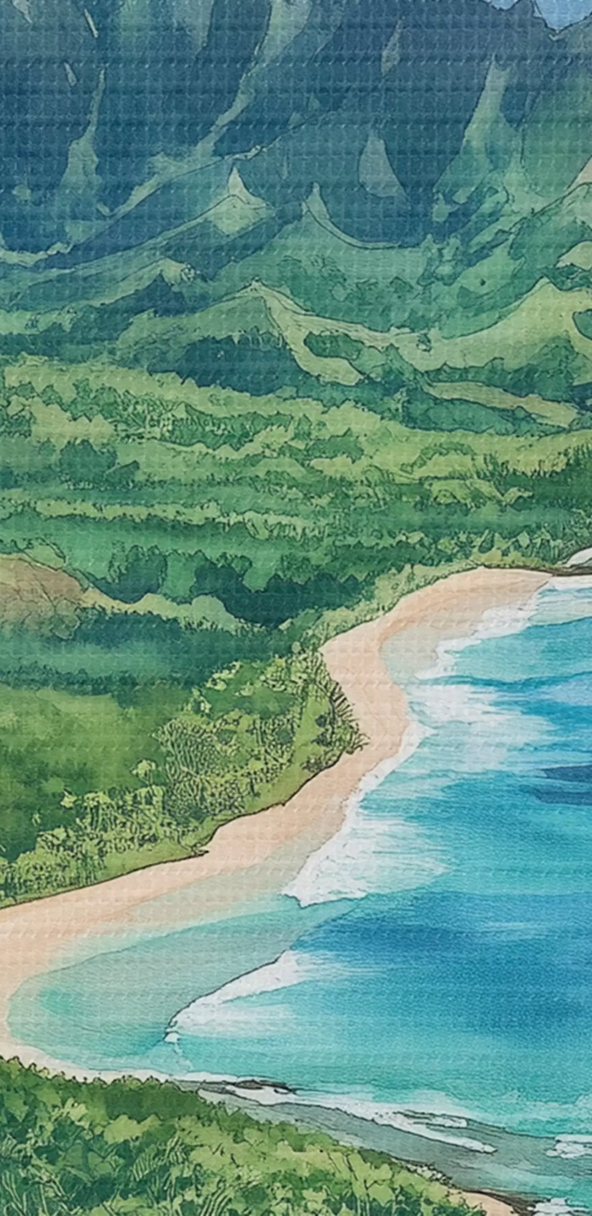Tableaux rondes Montagnes vertes, Hawaï, océan, tropical, aquarelle Nr r44143