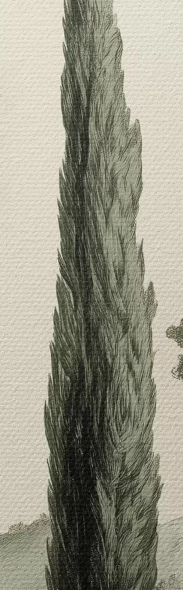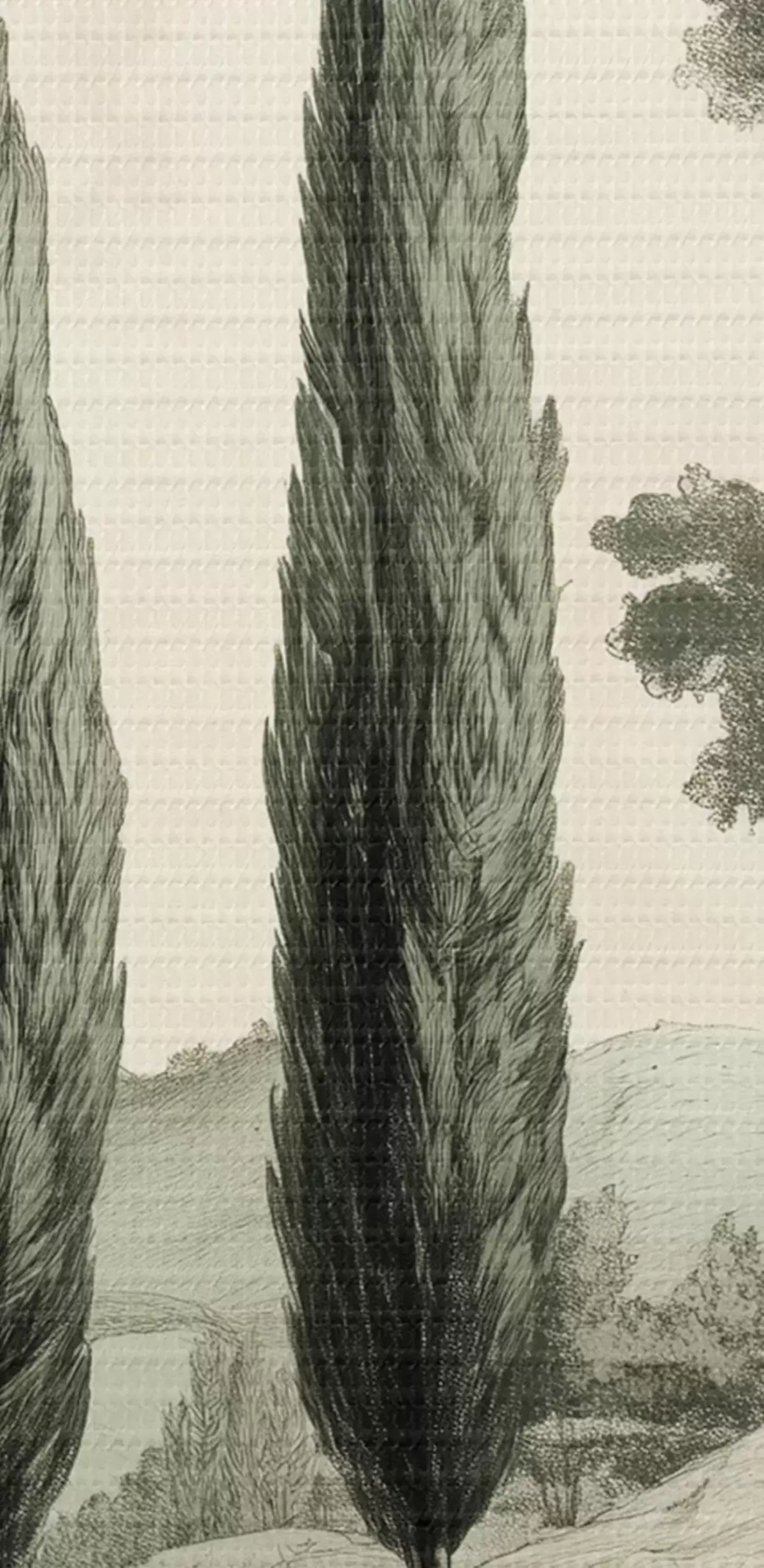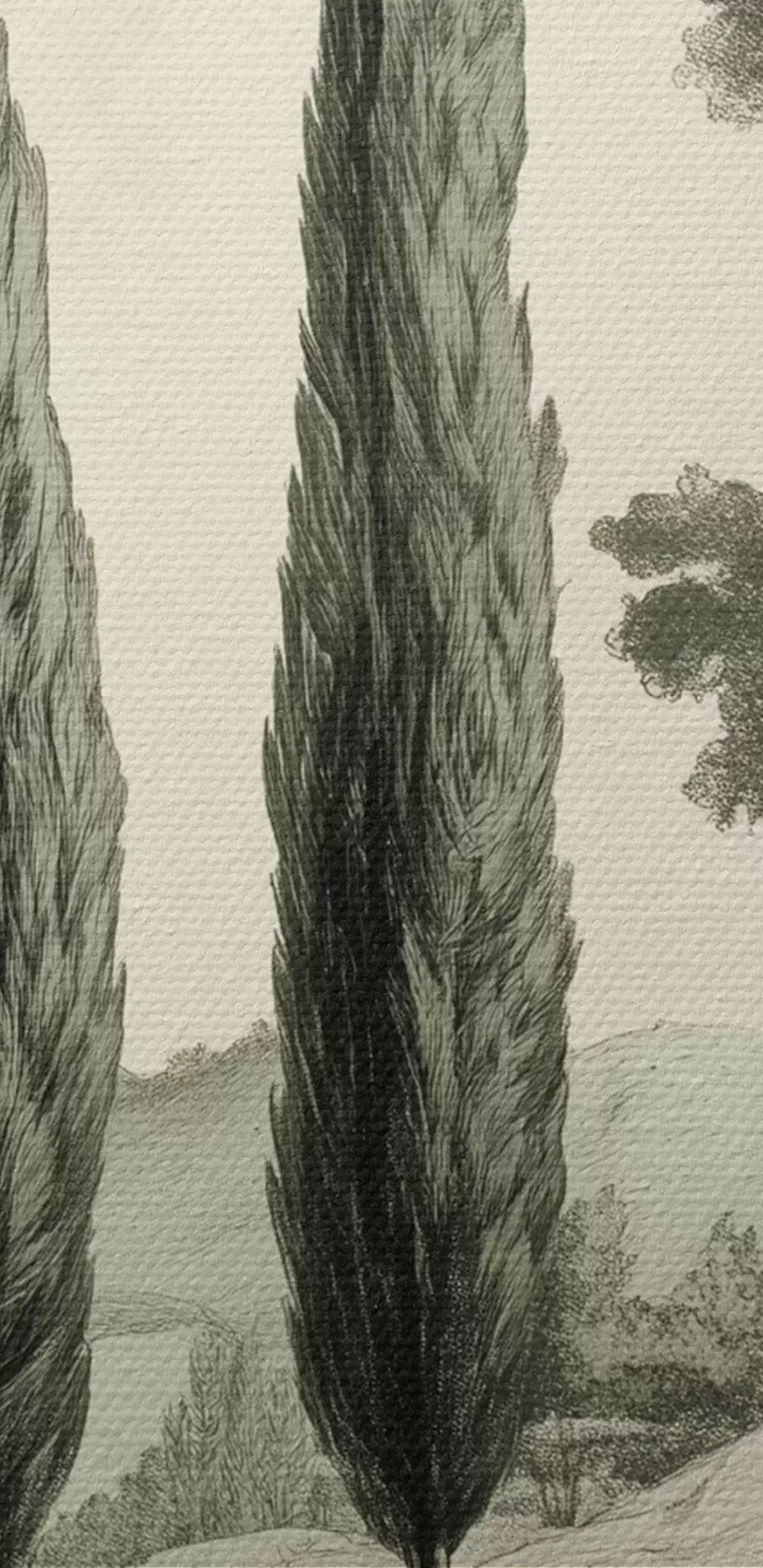 Tableaux rondes Paysages de Toscane, couleurs pastel, cyprès, rochers, style rustique r44307
