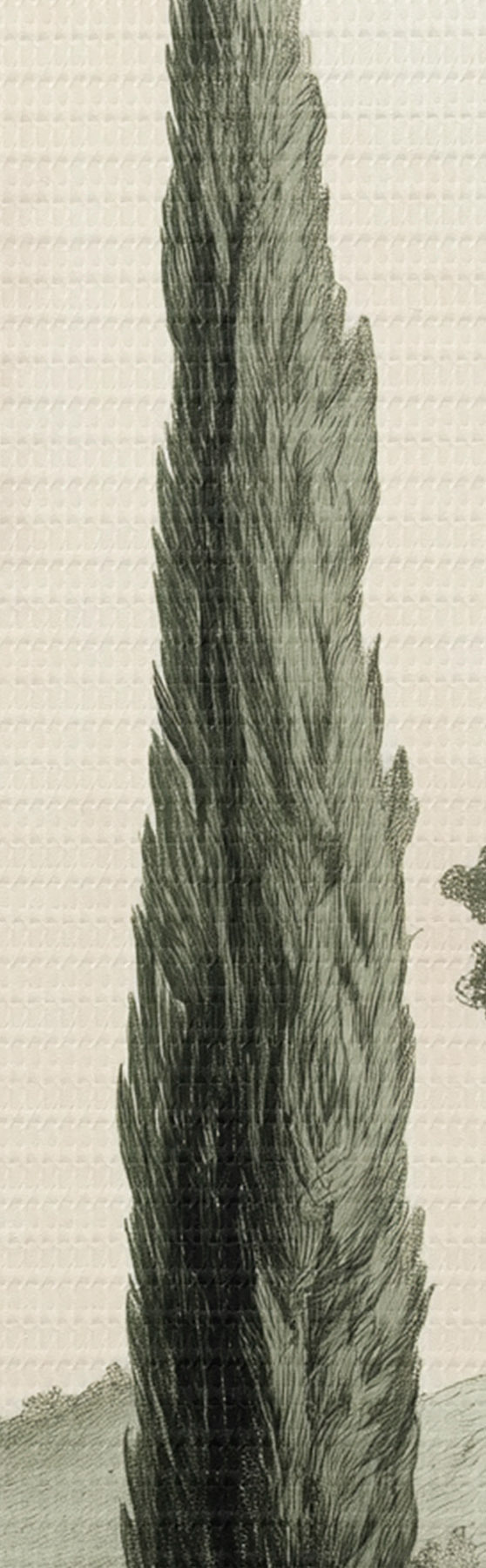 Tableaux rondes Paysages de Toscane, couleurs pastel, cyprès, rochers, style rustique Nr r44307