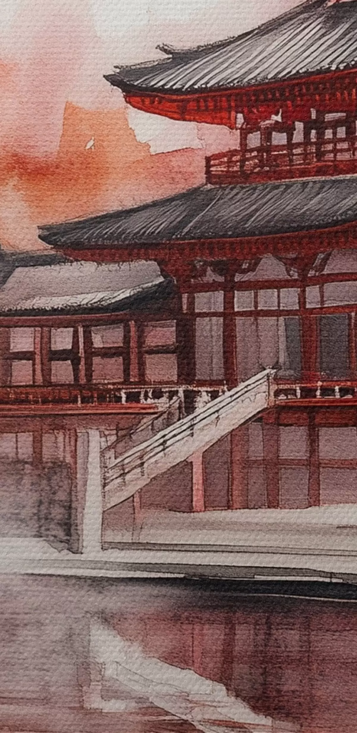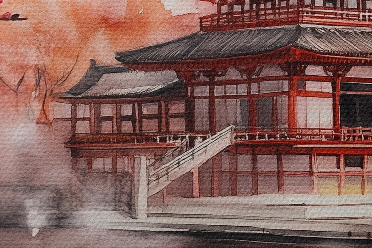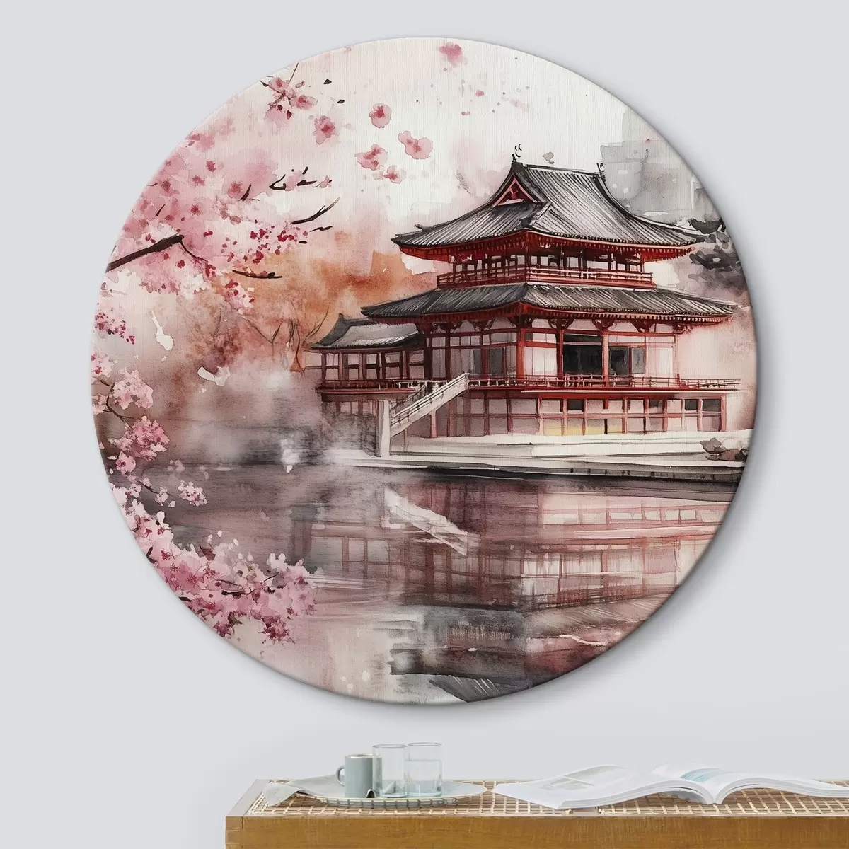 Tableaux rondes Magnifique paysage japonais avec cerisier en fleurs et maison sur le lac Nr r44310