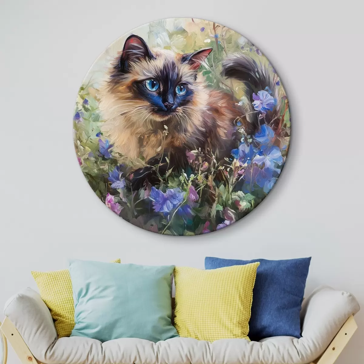 Tableaux rondes Chaton dans les fleurs Nr r44331