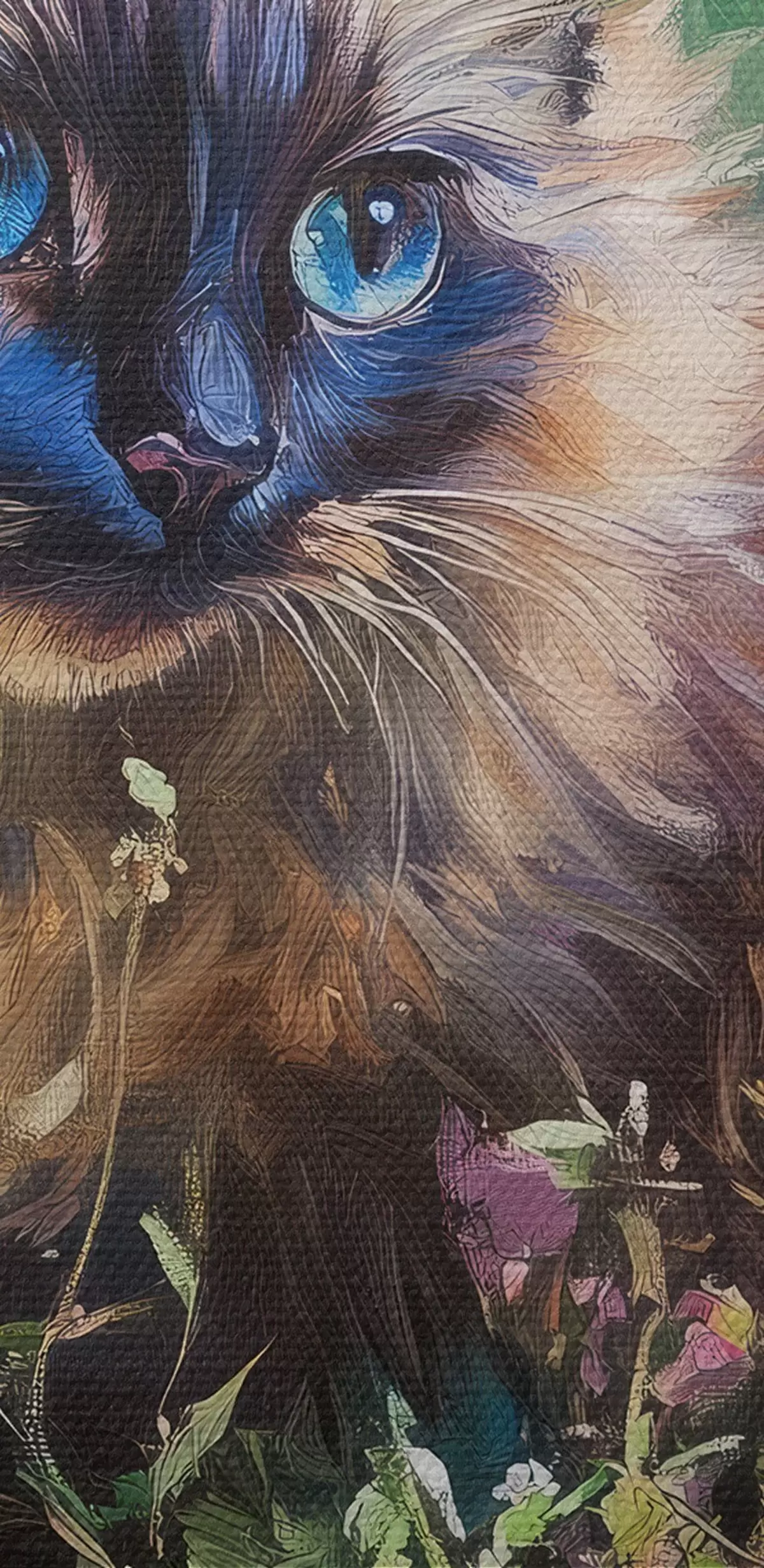 Trois types de matériaux peuvent être commandés : Economic Canvas - matériau dense et durable pour l'impression numérique, identique à la toile de peintre, surface imperméable, reproduction réaliste des détails, matériau à grain moyen. Premium Canvas - la texture ressemble à celle d'une toile de peintre (petits fils entrelacés). Reproduction douce et détaillée de l'image sur une surface mate. Eco-Premium - tissu 100 % coton de haute qualité. Grâce aux fibres naturelles de coton, le matériau est durable et résistant à l'usure. Excellente reproduction des couleurs et des détails.