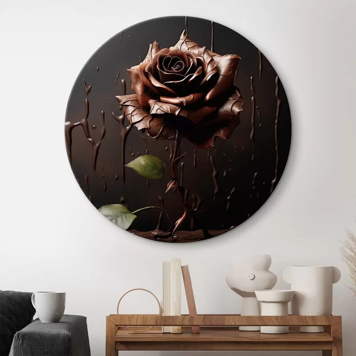Tableaux rondes Rose brune sur fond noir avec éclaboussures de chocolat Nr r44381