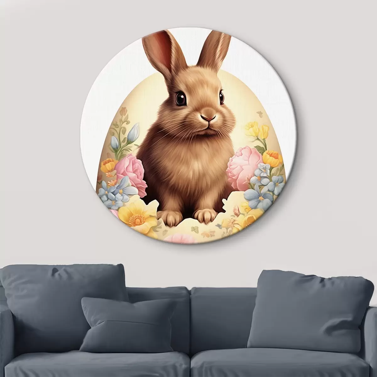 Tableaux rondes Lapin dans des fleurs aquarelles r44383
