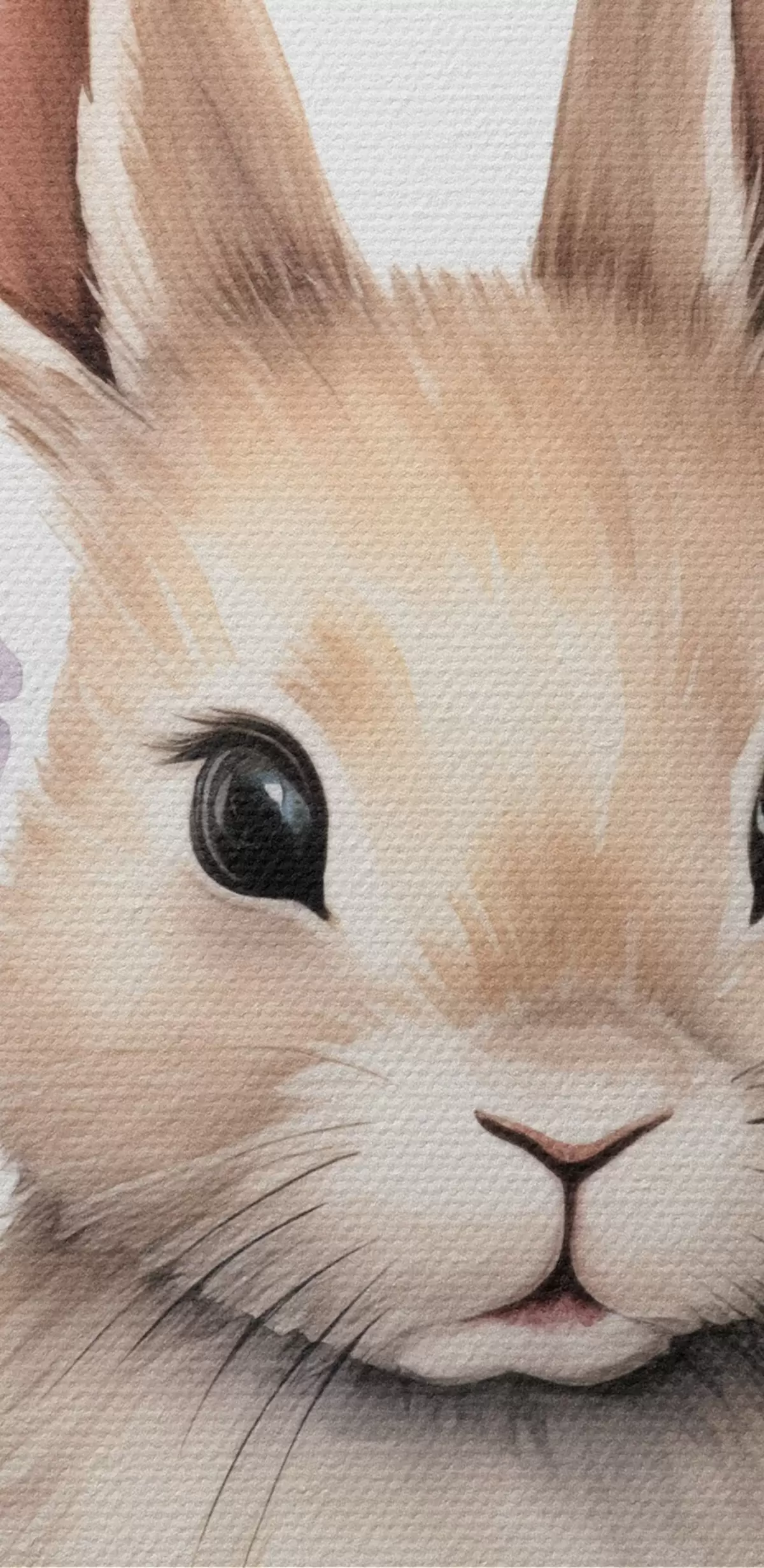 Tableaux rondes Lapin mignon en style aquarelle dans des fleurs avec des papillons Nr r44388